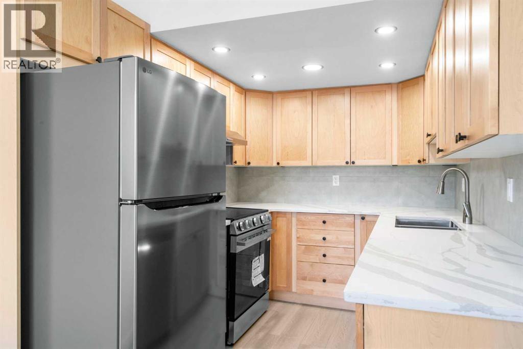 Beautifully Renovated, Move - In Ready Townhome in a prime NW Calgary Location! This bright, modern 2-bedroom townhome has been fully updated throughout and offers exceptional value for first-time buyers or anyone ready to upgrade from apartment living. Set in a quiet, well-managed complex with low condo fees, this home features a private fenced yard, stylish interior renovations, and an unbeatable central NW Calgary location. You will love the fresh, contemporary updates: new flooring on the main level, knock-down ceilings, upgraded lighting, trim, paint, newer windows and doors, and a fully renovated 4-piece bathroom. The beautifully redesigned kitchen showcases shaker style maple cabinets, modern backsplash, Caesarstone counters, and new appliances, with a sunny dining nook overlooking the fenced yard - perfect for pets, gardening, or outdoor entertaining. The spacious, sunlit living room offers plenty of space for relaxation and gatherings. Convenient main-floor laundry includes a newer full-sized washer and dryer. A high-efficiency furnace and newer hot water tank help keep utility costs low and provide peace of mind. Upstairs, the generous primary bedroom comfortably fits a king bed and features his-and-hers closets plus a private balcony, ideal for morning coffee or evening fresh air. The second bedroom is large, with a double closet and built-in desk, perfect as a child’s room, home office, or guest suite. Plenty of storage throughout adds everyday practicality. Step outside to your sunny, private, fully fenced yard, beautifully landscaped with poured walkways and a patio, an excellent outdoor extension of your living space. Parking is effortless with an assigned stall just steps away and ample visitor parking throughout the complex. Pets are allowed with Board approval. The location is truly outstanding: St. Henry Elementary is right across the street, Dr. J.K. Mulloy School is just up the block, and Sir John A. MacDonald School is within walking distance. Minutes to Superstore, Deerfoot City, Nose Hill Park, the library, recreation centre, playgrounds, and major transit routes. Commuting is easy with quick access to Deerfoot Trail, Centre Street, 14th Street, and several nearby bus routes. This home blends modern style, affordability, and everyday convenience in a mature, family-friendly community. With immediate possession available, all that’s left to do is move in and enjoy. A must-see property, beautifully updated, affordable, and perfectly located in the heart of Huntington Hills! (id:6769