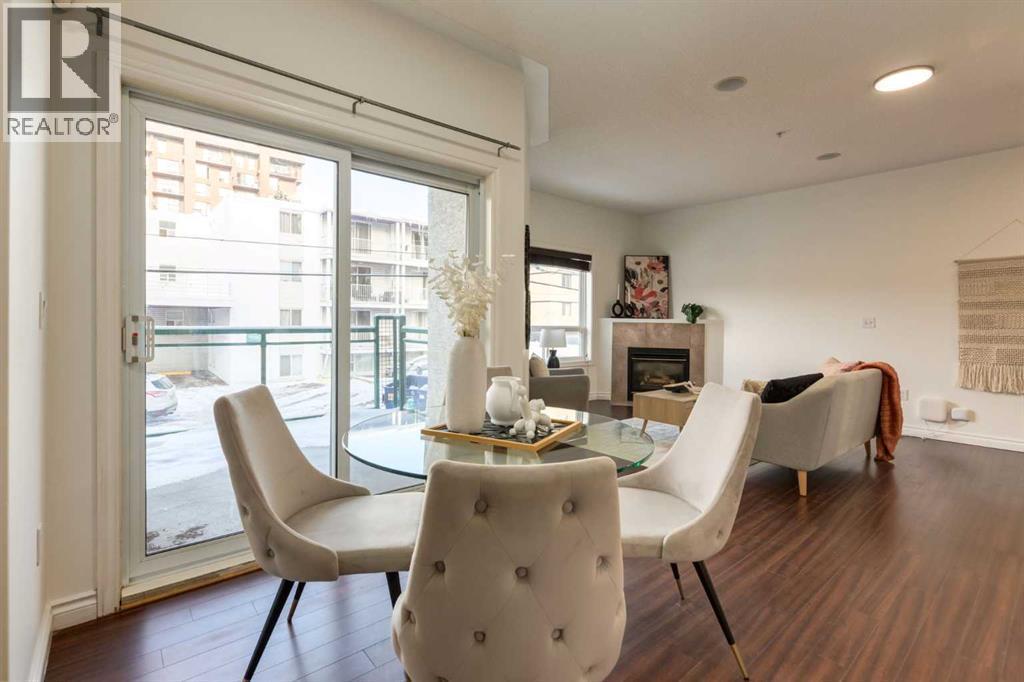 Discover a standout opportunity in the Beltline—a true two-storey, two-bedroom condo, rarely available at this price point and offering substantially more square footage than most properties in the area. Enjoy the walkable lifestyle of this vibrant neighbourhood—steps to restaurants, cafés, shops, parks, and downtown—paired with the privacy and security of a gated, townhouse-style setting.A spacious front entry leads into an open-concept main floor with hardwood throughout, a cozy fireplace, an upgraded kitchen with stainless steel appliances, a dedicated dining area, and a large covered outdoor patio perfect for year-round enjoyment. A convenient main-floor powder room adds extra functionality.Upstairs features two generous bedrooms, including a primary suite with a huge walk-in closet, along with a beautifully updated full bathroom and upper-level in-suite laundry. Additional comforts include efficient in-floor heating.Condo fees remain very reasonable and include heat, water, and maintenance. Your private entrance from the immaculately maintained gated courtyard means no elevators, no long hallways, and enhanced safety. Heated underground parking, storage, and permit street parking for visitors are all included.This quiet, well-managed complex delivers unmatched value with its rare two-level layout and extra living space. A must-see for buyers seeking more room, privacy, and lifestyle in the Beltline. (id:6769