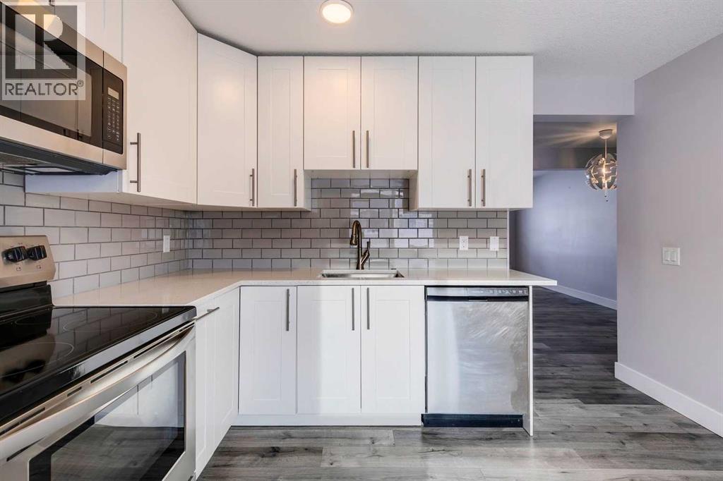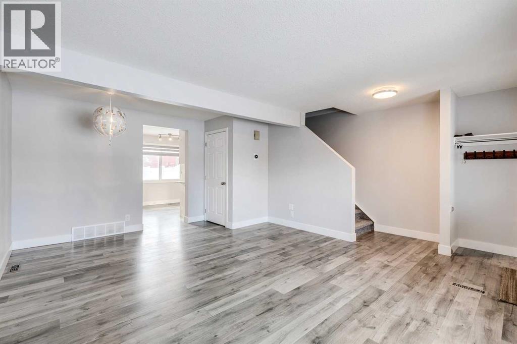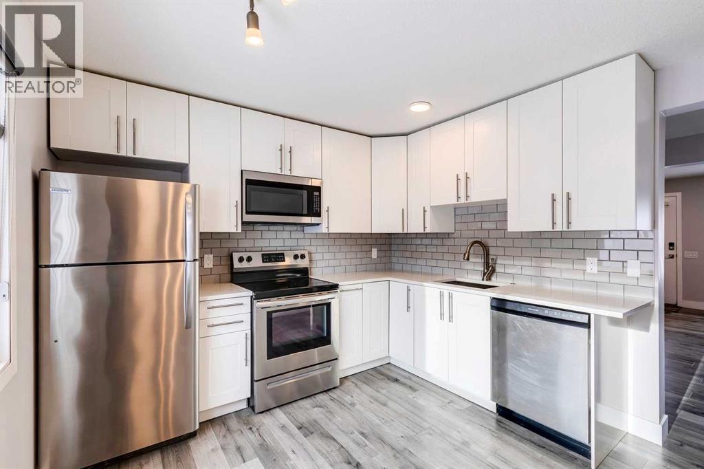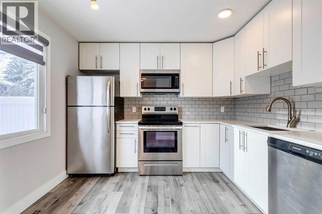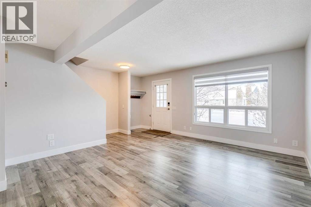 Wonderfully renovated townhome offering a bright and welcoming living space with modern laminate floors, fresh paint, and a beautifully updated kitchen featuring newer white cabinets, quartz counters, and stainless appliances. The upstairs has a renovated bathroom and three large bedrooms, including a huge primary suite with a custom built-in closet. You’ll love the private fenced yard that backs right to a greenspace. The large unfinished basement provides plenty of storage, and the furnace and water heater are approximately six years old. This well-maintained complex has seen major updates over the past decade, including windows, doors, roof, siding, and newer vinyl fencing, and the condo fees include water. There is an assigned parking stall right out from of this home. This townhome is ideally located in Queensland, just a short walk from Fish Creek Park with its endless pathway system and access to the Bow River. Commuting is convenient with quick access to Deerfoot Trail, and families will appreciate having several schools close by. Ready for a quick possession. (id:6769