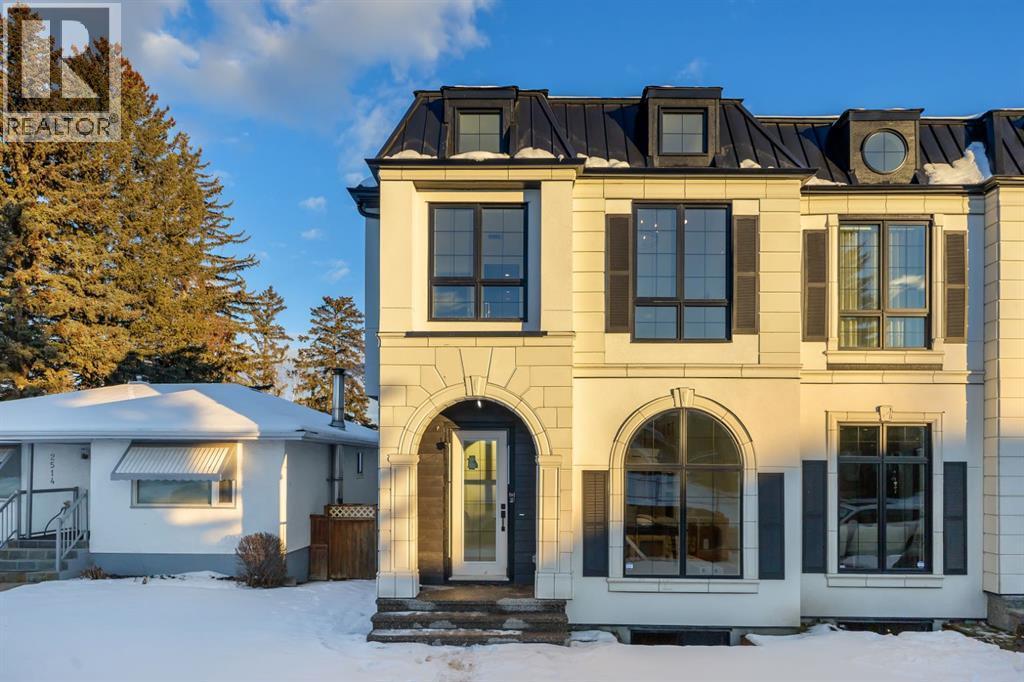 One Unit Remaining! Elegant French Chateau-Style Duplex in Richmond | Over 3,100 Sq Ft | Oversized Garage. Step into timeless sophistication with this beautifully crafted French chateau-inspired duplex, ideally located in the prestigious community of Richmond. Boasting over 3,100 sq ft of luxurious living space, this residence seamlessly blends classic charm with modern comfort. Engineered wood flooring flows throughout the main and upper levels, setting the tone for the refined finishes found throughout the home. Upstairs, you'll find three generously sized bedrooms, each complete with walk-in closets and private ensuites.. The stunning 5-piece primary ensuite is a true retreat, offering heated floors, a steam shower, a free-standing tub, a double vanity with a custom tower, and recessed lighting to create a spa-like atmosphere. The main floor is thoughtfully designed for both work and relaxation, featuring a convenient pocket office, a chef-inspired kitchen with a massive 15-foot island and high-end Kitchen Aid appliances, and an inviting living room centered around a cozy gas fireplace. A stylish mudroom with built-in cabinetry leads to the powder room and out to your private backyard through large patio doors. The fully finished basement offers a wet bar, bedroom with a 3 pc bathroom along with a huge rec area. Situated on a rare 135-foot deep lot, the backyard is generously sized—perfect for outdoor entertaining—and complemented by a double oversized garage for added convenience. This is a one-of-a-kind home that perfectly balances elegance, comfort, and versatility in one of Calgary’s most sought-after neighbourhoods. (id:6769