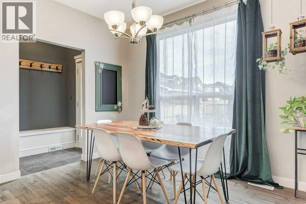This former Nuvista show home located in popular Ravenswood is a two storey home featuring 3 bedrooms & 2.5 bathrooms. The main floor boasts 9 ft ceilings with an open floor plan and separate foyer to welcome your guests. The spacious living room has three large windows and a gas fireplace with built in shelving plus tile surround/hearth. The lovely kitchen has an island, granite counters, stainless steel appliances (stove replaced 2025 & newer dishwasher) plus a good-sized pantry and separate dining area. The spacious laundry room, two-piece bathroom and back door entrance with storage bench complete the main floor. Upstairs you will love the primary bedroom with large walk-in closet with a window plus a 3-piece ensuite with a 5-foot shower. Two large bedrooms with good-sized walk-in closets and a 4-piece main bathroom complete this level. This home offers a nice sized backyard with a deck and a double detached garage. Located close to schools, playgrounds, walking paths, shopping, dining and more! Great access to transit and major routes. Don’t miss it, call your favorite Realtor today! (id:6769