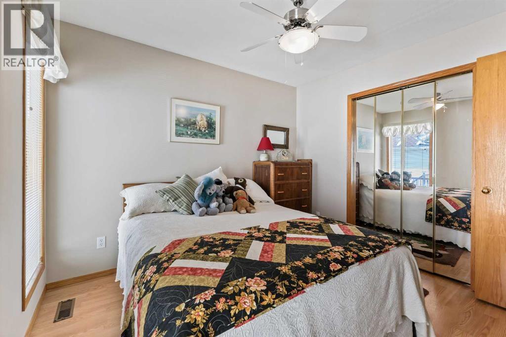 Move in ready, Park-Facing Bungalow with RV Parking & Fully Developed Basement! Experience the perfect blend of functionality, comfort, and convenience in this lovely bungalow, ideally situated directly across from a park in the mature neighborhood of Green Meadow. Complete with a Double Attached Garage, this home is ready for your touch! Step inside the main level to find a bright, open-concept living and dining area, accented by soft neutral tones and anchored by a cozy gas fireplace. The kitchen boasts generous cabinet and prep space, connecting easily to the dining area and an exceptional covered back deckâperfect for grilling and entertaining. A flexible area in the kitchen is ideal for a breakfast bar, coffee station, or a dedicated homework area. This level features three well-proportioned bedrooms, including the private Primary Suite with its own three-piece ensuite. A full four-piece family bathroom and a highly practical main-floor laundry room (with stacked washer/dryer, utility sink, and freezer) complete the 1395.29 sq ft. main level living. The fully developed basement is an exceptional extension of the home, offering superb utility and entertainment space. It features two massive rec. rooms for casual living and media, a dedicated large at-home work area, and ample storage. Guests will love the private fourth bedroom with a huge walk-in closet and a nearby three-piece bathroom. The exterior is designed for easy living, thoughtfully landscaped with low-maintenance front yard, fully fenced back yard with garden shed, underground sprinkler system, and back alley access to graveled parking area large enough for RV. Located close to George Freeman school and SMP Sports, as well as the beautiful walking paths along the canal, you are minutes to all of Strathmore's amenities. Don't miss this opportunity! (id:6769