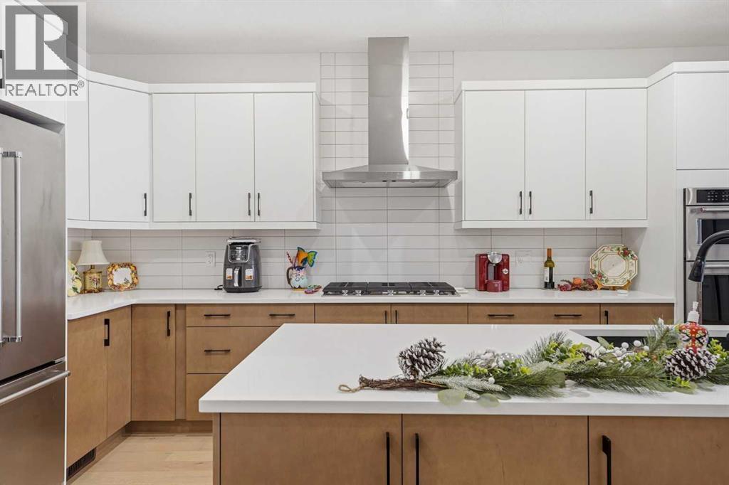 Live at the Resort—without ever leaving Calgary!This thoughtfully designed home brings together upscale finishes, modern comfort, and a serene setting just moments from the Lake. From the moment you enter, the grand foyer sets a refined tone that continues throughout the main level.At the heart of the home, the chef-inspired kitchen impresses with quartz countertops, bold two-tone cabinetry, premium built-in appliances, a gas cooktop, undermount sink, and a large island perfect for prep or casual dining. Soaring 9-ft ceilings and LED under-cabinet lighting enhance the sense of space and style. The kitchen flows seamlessly into the open-concept living room, where an elegant fireplace and oversized windows frame views of the beautifully landscaped grounds, complete with peaceful water features that create a natural, stream-like ambiance.Tucked just beyond, the primary suite offers a calming escape featuring a spa-inspired ensuite with dual sinks, a standalone glass shower, an oversized soaking tub, and a generous walk-in closet. A main-floor laundry area and a stylish powder room add everyday convenience.Downstairs, the fully developed basement extends the home’s versatility. The expansive recreation area is perfect for both relaxation and entertainment—currently set up with a ping pong table and treadmill, making it an inviting space for family fun. This level also includes two comfortable bedrooms, a full bathroom, a second laundry room repurposed as storage, plus additional under-stair storage.The front double attached garage provides year-round comfort and includes EV charging rough-in. Outside, the low-maintenance outdoor space opens directly onto the lush landscaped grounds and tranquil water features, allowing you to enjoy the soothing sounds and calming atmosphere right from home. And with the Lake just a short stroll away, this location offers the best of relaxed, resort-style living.Built to BuiltGreen Canada standards, this Smart Home prioritizes efficiency and innovation. Features include solar panels, triple-pane windows, Navien tankless hot water, a UV-C air purification system, a dual-zone high-efficiency furnace with MERV 13 filtration, and a heat recovery ventilator.A beautiful harmony of modern luxury, high-performance design, and nature’s tranquility—Welcome Home! (id:6769