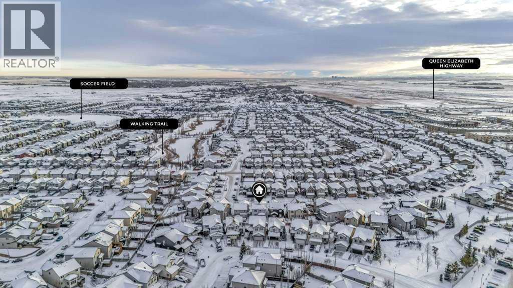 Welcome to this very spacious property located in the heart of Kings Heights in Airdrie. It sits on an absolutely quiet cul-de-sac. A super safe street for children and offers a massive lot close to 5,000 sq. ft. with a large backyard. This home provides nearly 3,500 sq. ft. of living space, perfect for a large or growing family.The large foyer opens to the main floor with ceramic tile flooring and leads to a generous office with hardwood flooring. This space is versatile , perfect as a home office or easily used as a bedroom, large enough to fit a queen bed and dresser. The main floor also features a 2-piece bathroom and a spacious living room with a cozy corner fireplace. The 9-ft ceilings and large windows make the entire main floor bright, open, and full of natural light.The dining room is sizeable enough to accommodate an 8-chair dining set, ideal for gatherings and family dinners. The kitchen is impressive and massive, with plenty of cabinetry, granite countertops, a double sink with an eating bar, and a large walk-through pantry with built-in shelving that connects to the mudroom with a great-sized closet.Upstairs, you’ll find a huge bonus room with a built-in office space, desk, shelving, and TV setup a perfect multi-use area. The master bedroom is extremely spacious, easily fitting a king bed and full furniture set. It includes a 5-piece ensuite with granite countertop and a very large walk-in closet. Two additional large bedrooms, a 4-piece bathroom, and a convenient laundry room complete the upper floor. The entire upper level is carpeted for comfort.The finished basement offers two large bedrooms with big windows that bring in plenty of natural light, a 3-piece bathroom, and a comfortable family room, a great setup for extended family or teenagers. An additional bonus is the abundant storage space throughout the basement.Kings Heights is a wonderful, safe community with all amenities nearby, close to shopping centers, playgrounds, and just minutes f rom Highway 2 (Deerfoot Trail).Don’t miss this amazing property! A perfect opportunity to own a spacious home in a fantastic location! (id:6769