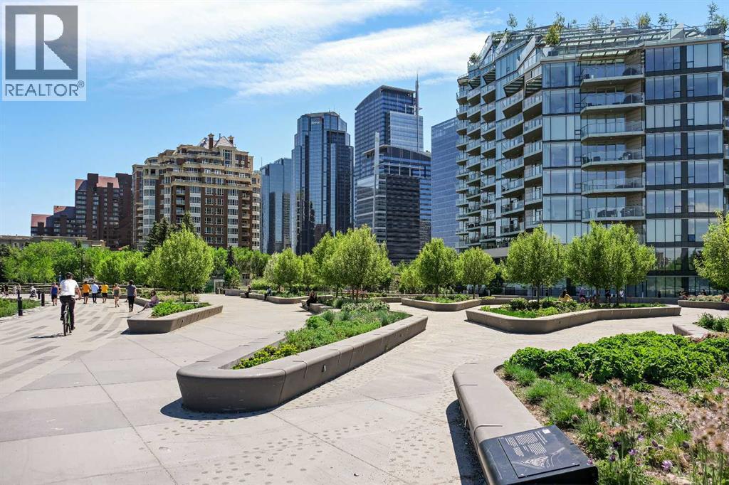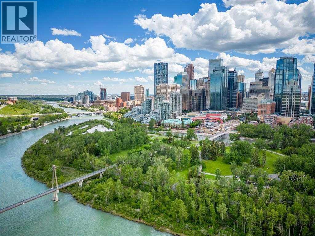 Exceptional value for this spectacular Top-Floor Penthouse in the Pavilions of Eau Claire with unparalleled prime northwest corner location! Outstanding condominium home with 2 UNDERGROUND TITLED PARKING STALLS, air conditioning, loft, soaring-high cathedral ceilings, many large bright corner windows, plenty of natural light and thoughtfully designed open-concept layout that seamlessly connects the kitchen, dining and living areas making it perfect for entertaining or home relaxation! Beautifully appointed and upgraded condo with hardwood & tile floors, granite counter-tops throughout, custom privatized Hunter-Douglas blinds with black-out features and both bathrooms have been completely renovated. Large northwest corner balcony with BBQ gas-line, brand new air conditioning unit, partial views of Peace Bridge and handy secure storage room. Spacious primary bedroom has large bay window, 3 pce ensuite bathroom with rain shower, walk-in closet and guest bedroom is conveniently located next to 4 pce main bathroom. Enjoy the corner gas fireplace and large versatile loft overlooking the living area that can be used as a family or recreation room! Comes with large separate laundry room with storage, European washer/dryer combo, under-stairs storage and choice parking stalls #80, #134(with storage cage) both conveniently located next to the elevator! This special home boasts the largest floor plan, finest location and best parking stalls in the building!! The ever popular Pavilions of Eau Claire offers a secure entrance lobby with seating area, main floor party/billiard room, secure underground titled parking & bike storage and visitor parking on the south side of the building. Exceptional heart of Eau Claire location nestled along the south bank of the Bow River, close to the world-class pathway system, beautiful Prince's Island Park and walking paths, close to great restaurants and fine dining, Buchanan's chop house & whisky bar is across the street, half-block to the ou tstanding Alforno bakery & cafe and just a short walk to Light Rail Transit and transportation, Peace Bridge, Kensington shops, Safeway and Calgary's vibrant city center. Enjoy downtown urban living at it's finest! (id:6769