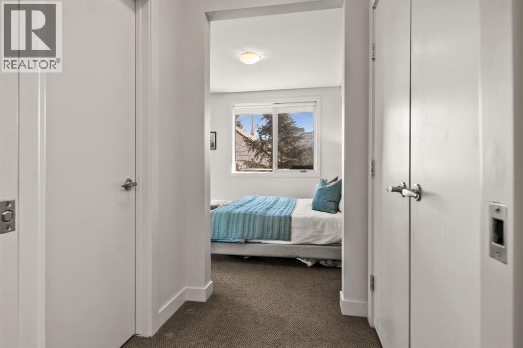 Welcome to unit #203 in the stylish Tweed building. This concrete-built low rise residence is tucked away on a quiet street between Calgary’s buzzing 17th Avenue and the coveted Mission neighbourhoods. Here, you are steps from the city’s best dining, cafés, boutiques, and nightlife, yet surrounded by the charm of mature trees and a neighbourly atmosphere.This second floor corner unit invites you in with an airy, open-concept design bathed in morning light from floor-to-ceiling east-facing windows. Recently updated, light wood flooring, tall ceilings, and a sleek gas fireplace create a welcoming, yet modern tone. The kitchen blends beauty and function with a large stone-topped island, stainless steel appliances, and flat-panel wood cabinetry, while the dining space sets the stage for everything from lively dinner parties to quiet meals at home.The primary suite is a personal retreat with statement wallpaper, both a walk-in and walk-up closet, and a spacious ensuite featuring double vanities, a large shower, and linen storage. The second bedroom has its own ensuite, ideal for guests, roommates, or a dedicated home office.Step outside to your private, tree-shielded patio with a gas hookup for barbecue, perfect for unwinding after the day. Additional perks include in-suite laundry, window coverings, a titled underground parking stall, and an assigned storage locker. Concrete construction ensures quiet, private living, while the building’s intimate scale—two elevators serving only four storeys—adds to its boutique appeal.With a well-managed condo board, healthy reserve fund, and strong owner occupancy, this move-in-ready home delivers on style, location, and lifestyle. Whether it’s your first home, a sophisticated upgrade, or an investment in one of Calgary’s most walkable communities, unit 203 in the Tweed offers the perfect blend of city energy and retreat-like comfort. (id:6769