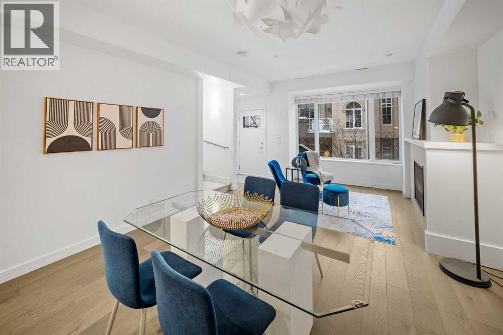 Three bedrooms, two bathrooms, dedicated storage, and titled parking come together in a boutique brick row building with subtle brownstone vibes and classic urban styling. This townhome blends vibrancy, privacy, and low maintenance living in one of Calgary’s most walkable locations. Just moments from the energy of 17th Avenue and the Beltline, you are surrounded by fabulous local dining, cafes, boutique fitness, and everything that makes inner city living so coveted. Tucked away from the street for added peace, the secure setting of the building creates an inviting atmosphere where, in the warmer months, neighbours often unwind on their own private terraces with barbecues or a glass of wine, adding a warm community feeling while maintaining personal privacy. Inside, this home offers the spaciousness of a traditional layout with the ease of condominium living. The modern kitchen features quartz counters, stainless steel appliances including a five burner gas range, generous cabinetry, a breakfast bar for casual meals, and the option to take dinner parties to the dining table that easily seats six. It all flows naturally into the inviting living area where a cozy gas fireplace anchors the room. The second level includes two comfortable bedrooms, a four-piece bathroom, and full size laundry. One more level up is the dedicated entirely to the primary retreat, the true showstopper of the home. This primary bedroom feels both serene and elevated with its soaring vaulted ceilings, wrapped in windows and offers a truly calming sense of space. A generous walkthrough closet offers abundant hanging space and leads to the relaxing spa inspired ensuite complete with double vanities, a glass shower, a deep soaker tub, and the added luxury of heated floors. Topping off this decadent level is the private balcony, perfectly positioned to overlook the front courtyard while capturing beautiful westerly views. The lower parkade entry level has a spacious flex or storage room which prov ides loads of shelving for effortless organization. This home also includes two additional outdoor lounging spaces; A charming backyard area offers a quiet spot for al fresco dining and relaxing, while the welcoming front terrace is ideal for morning coffee, evening wine, and summer barbecuing with friends. Small pets are welcome too (with board approval), and some owners have created a cute outdoor relief spot in their backyard - on leash or with board approved fencing, ideal for quick winter outings with your furry friend. Your secured and titled indoor/heated parking stall is conveniently located beside your parkade door with room for a bike. This beautifully maintained unit is also offered turn-key (move-in ready) with it’s furnishings & all kitchen items … for a seamless move. With only nine units in the building and close proximity to parks, schools, gyms, hot yoga, shopping, transit, and major routes, this home delivers elevated inner city living at its finest. (id:6769