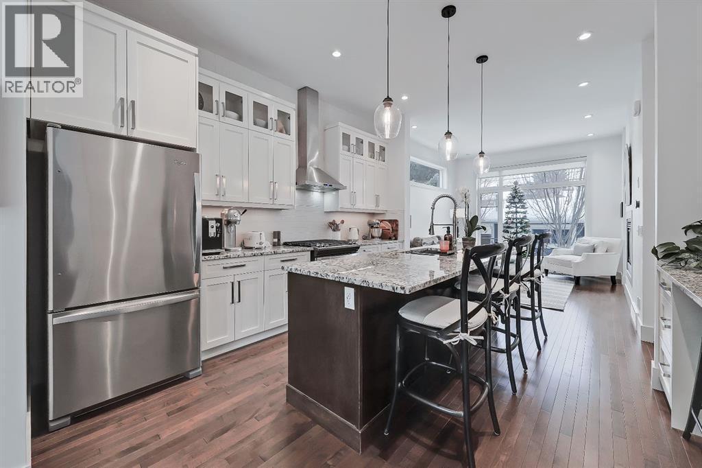 This semi-detached home in Renfrew delivers a bright, modern lifestyle in one of Calgary’s most walkable inner city communities. With 4 bedrooms, 3.5 bathrooms, and a thoughtfully updated interior, it offers the kind of everyday comfort and design-forward details that make it feel instantly welcoming. The main floor opens with 10 ft ceilings, warm hardwood, and big windows that carry natural light from front to back. A true dining room anchors the front of the home—bright, inviting, and perfectly sized for hosting—while still feeling connected to the main living space. The gourmet kitchen is the heart of the main level, built with GRANITE COUNTERS, CUSTOM CABINETRY, STAINLESS STEEL APPLIANCES, and a large island that works for prepping, gathering, or weeknight meals. The layout keeps everything flowing smoothly toward the living area, where generous seating space makes it easy to settle in, anchored by a cozy GAS FIREPLACE—perfect for chilly evenings. At the back of the home, a functional mudroom includes a good-sized closet to keep shoes, coats, and everyday gear neatly organized. Upstairs, the PRIMARY SUITE feels elevated and calm with its 11 ft ceiling and RENOVATED ENSUITE. The ensuite features DUAL VANITY, updated finishes, and a large glass shower that adds a spa-like feel. Two additional bedrooms share a full bathroom, and UPPER LAUNDRY keeps daily routines simple and efficient. The fully developed basement adds valuable extra living space. A spacious family room offers flexibility for movie nights, play space, or a home gym, and the BUILT-IN WORKSTATION makes work-from-home days easier. A full bathroom and a fourth bedroom with a WALK-IN CLOSET complete the level, creating a comfortable setup for guests or older kids. Outside, the PROFESSIONALLY LANDSCAPED BACKYARD is ready for relaxing, gardening, or outdoor entertaining, featuring a new deck and sunny SOUTH exposure that fills the space with warmth and natural light—ideal for lounging in the sun, firing up the BBQ, and hosting friends and family. A DOUBLE DETACHED GARAGE adds everyday ease with secure parking year-round, plus plenty of extra room for bikes, seasonal gear, tools, and storage. Set in a quiet pocket of Renfrew, this home gives you fast access to parks, pathways, schools, and neighbourhood favourites. You’re close to the Renfrew Aquatic Centre, the community sports fields, and the shops and restaurants in both Renfrew and Bridgeland. Quick downtown access and nearby transit make commuting easy, while the area’s strong community feel and walkability add to the day-to-day experience. Altogether, this property stands out as a well-finished, thoughtfully updated inner city home with strong lifestyle value. See it for yourself today! (id:6769