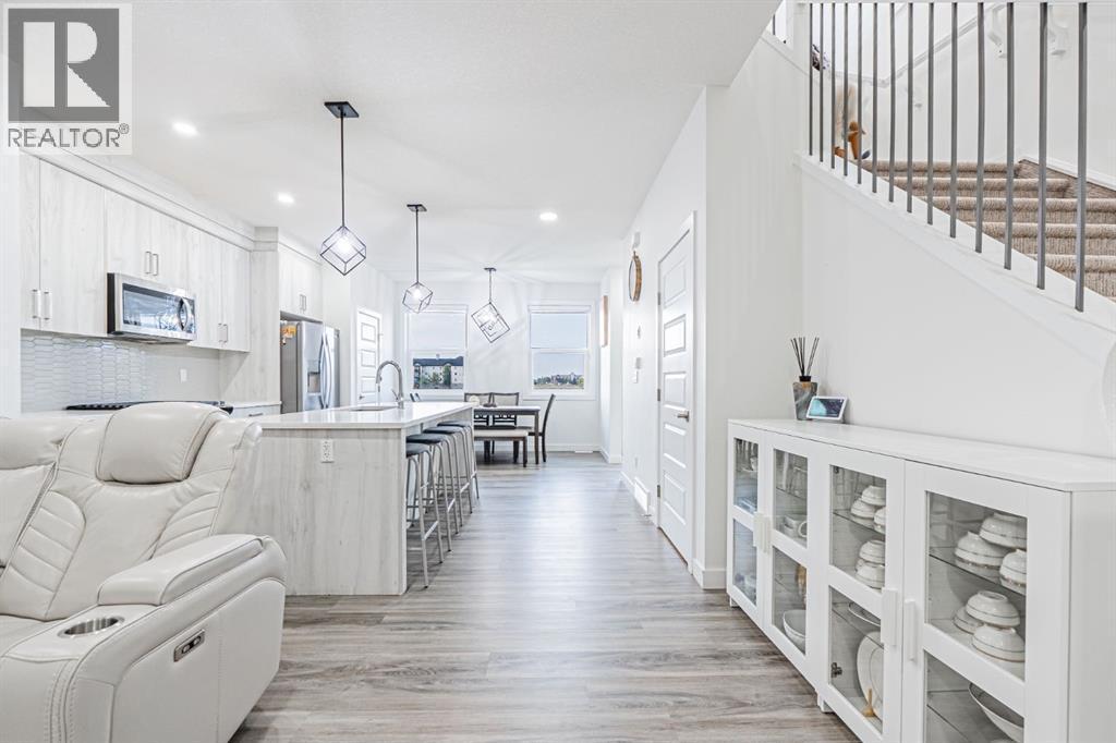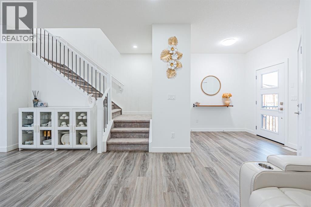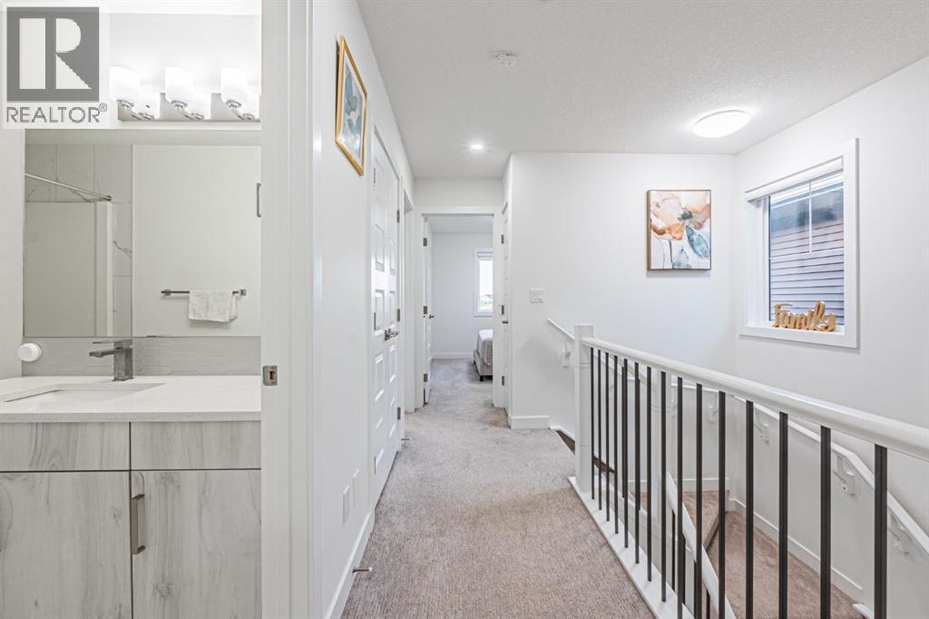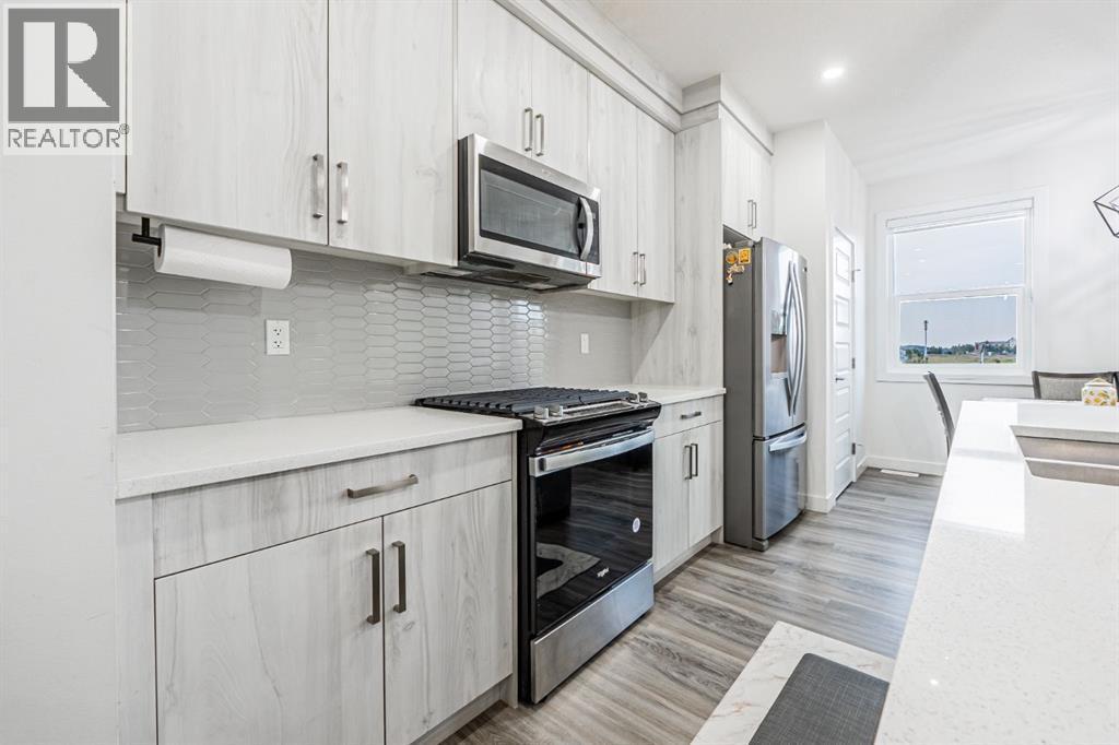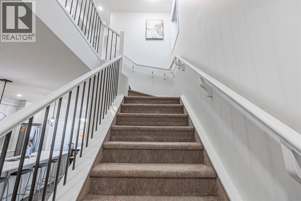 4 BEDROOMS + DEN | 3.5 BATHS | FRONT ATTACHED GARAGE | ILLEGAL BASEMENT SUITE | HIGH-END FINISHES | PRIME LOCATION | Welcome to this stunning and exceptionally maintained front garage duplex in the sought-after community of Midtown, Airdrie. This beautiful home showcases a modern design, high-end finishes, and a functional layout perfect for families, professionals or investors. With a total of 4 bedrooms plus a den and 3.5 bathrooms, this property offers exceptional comfort, versatility, and value.The main floor features a bright and open-concept layout that seamlessly connects the living, dining, and kitchen areas—perfect for entertaining or everyday family life. The elegant kitchen is a true highlight, complete with stainless steel appliances, ceiling-height cabinetry, quartz countertops, and a large island that provides additional workspace and seating. A cozy living room invites relaxation, while the dining area opens to a fully fenced and landscaped backyard with a deck and BBQ gas line, ideal for summer gatherings. A convenient half bathroom completes the main floor.Upstairs, you’ll find three spacious bedrooms, including a luxurious primary suite with a walk-in closet and private ensuite bathroom. Two additional bedrooms share a full bath, and the upstairs laundry adds everyday convenience. The upper level offers a versatile layout perfect for growing families.The basement is fully developed with an illegal suite featuring a separate side entry, large living area, modern kitchen, bedroom plus den, and a full bathroom. This space is currently rented, making it an ideal mortgage helper or a perfect setup for extended family.Located in a quiet and family-friendly area, this home is just steps away from parks, walking trails, schools, and essential amenities such as Co-op Gas, Tim Hortons, and shopping. With 8 years of new home warranty remaining, this property offers both peace of mind and exceptional value.Move-in ready and waiting for you—schedule your private viewing today! (id:6769