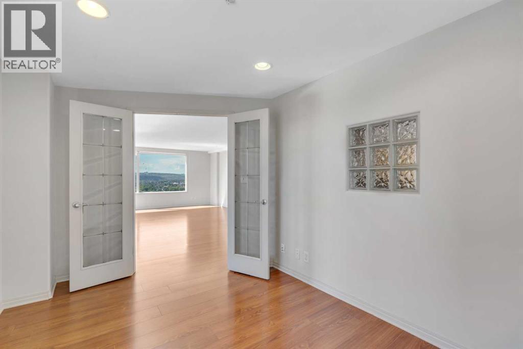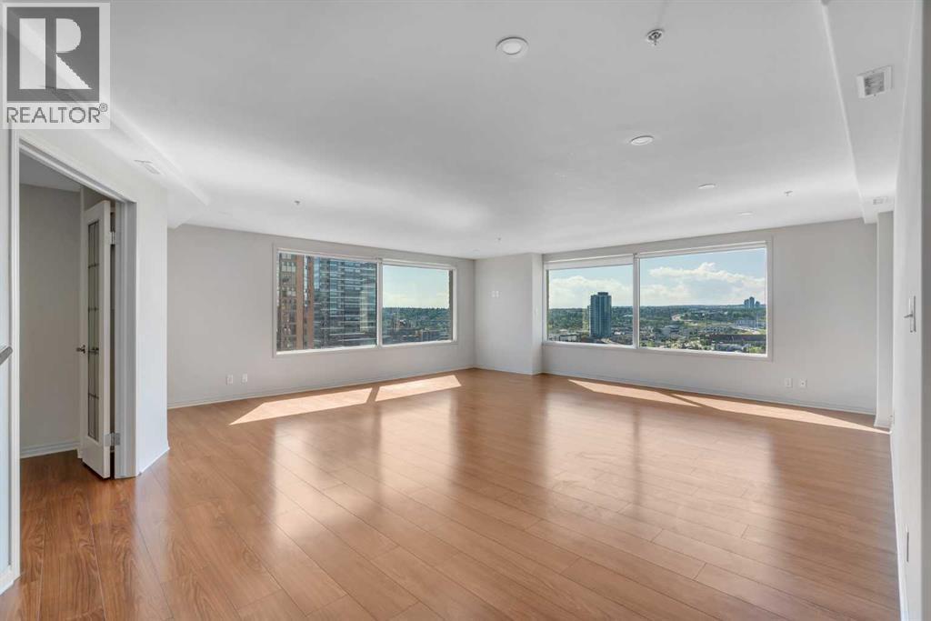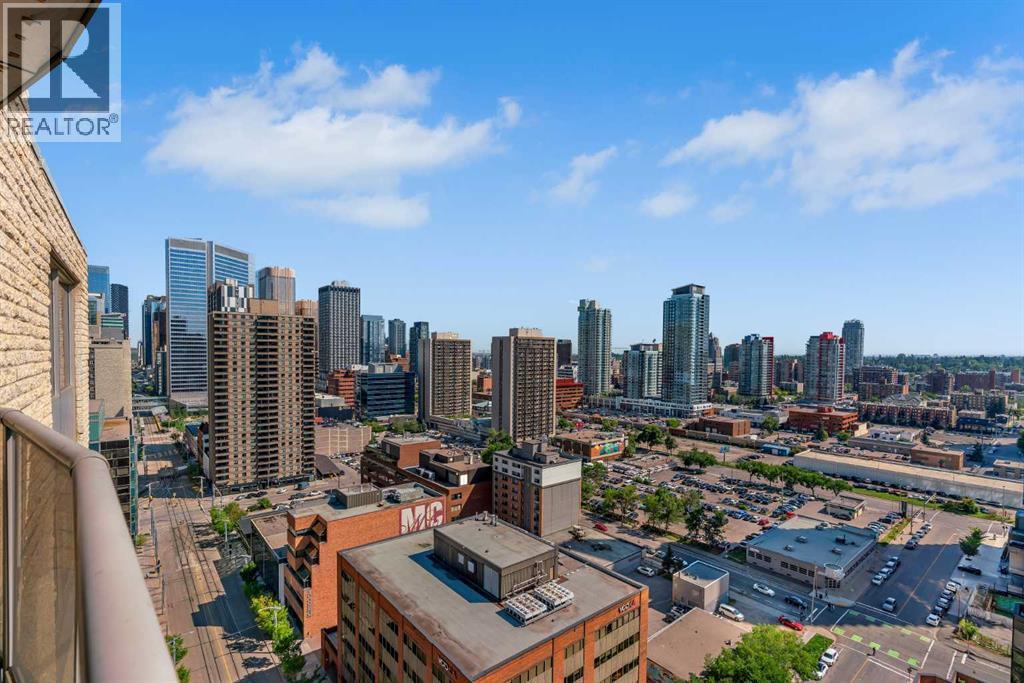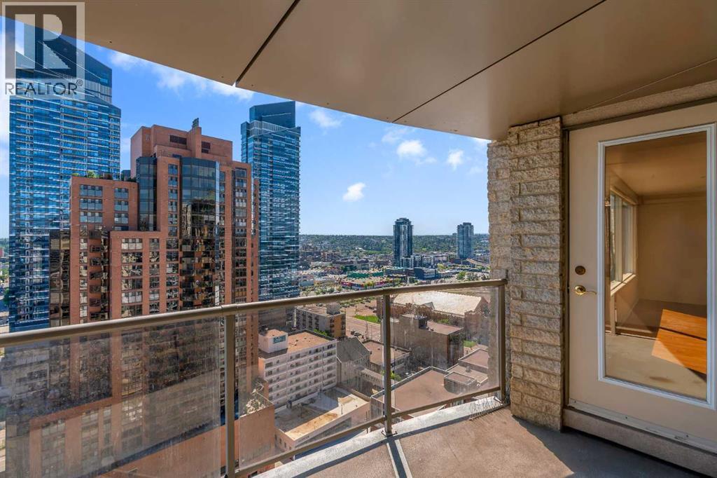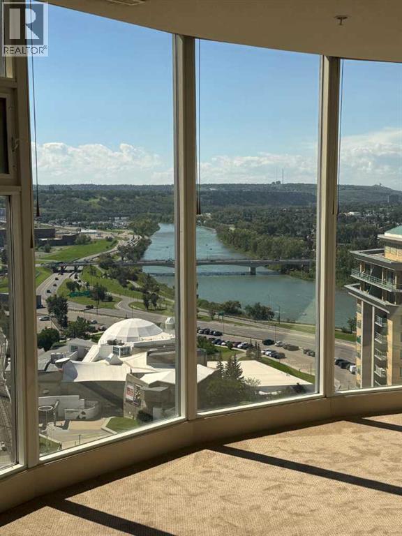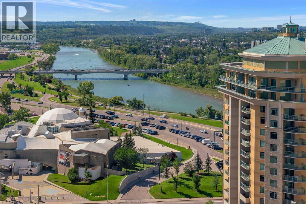 Unparalleled, Spectacular PANORAMIC VIEWS of the mountains, Bow River, and sparkling city lights! This nearly 1,600 sq. ft. luxury condo offers 2 bedrooms plus a den, 2 full baths, and 2 secure titled, underground parking stalls. Beautifully updated with hardwood floors, new carpet, fresh paint, and custom window coverings. Expansive windows fill the open living space with natural light, highlighting the raised panel cabinetry, granite countertops, pot lighting, and quality finishes throughout. Enjoy year-round comfort with full air conditioning and the sought-after south and west exposure. Ideally located in West Downtown with the Kerby LRT station right at your doorstep, and just steps to Shaw Millennium Park, river pathways, and all the conveniences of the city. Easy in-and-out access to downtown makes this the perfect urban retreat. This is the place to "right-size"! (id:6769