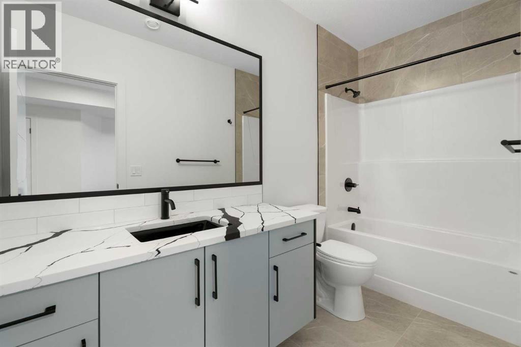 ELIGIBLE FOR FIRST HOME BUYERS GST REBATE! Experience the warmth and comfort of this delightful move-in-ready bungalow situated on a corner lot, in the friendly Lakes Estates community of Strathmore, just a quick 30-minute drive from Calgary. Spanning 3,310 Sq. Ft. of finished space, with a TRIPLE GARAGE, this brand-new home beautifully combines cozy design, thoughtful upgrades, and great value. The heart of the home is the inviting kitchen, complete with stylish gun metal stainless steel appliances, lovely quartz countertops, custom cabinetry, and a spacious island that’s perfect for family meals and gatherings. The open-concept main floor is filled with character, showcasing high ceilings, warm luxury vinyl plank flooring, and large windows that let in an abundance of natural light. With three comfortable bedrooms and two bathrooms on the main floor, plus an additional two bedrooms and two baths in the fully finished basement, this home is perfect for hosting friends, family, or guests. The cozy basement is an entertainer’s dream, featuring a wet bar, a versatile theatre/flex room, and a dedicated space for a home gym, all designed for relaxation and enjoyment. Step outside to the welcoming west-facing backyard, where you’ll find a full-width deck ideal for enjoying peaceful evenings and sunset barbecues. The tranquil pond views across the street add a touch of serenity to your outdoor space. Lakes Estates is a quiet and family-friendly neighborhood, offering plenty of green spaces and walking paths, along with easy access to Highway 1. Enjoy a smoother commute from Strathmore to Calgary, avoiding the busy city traffic. (id:6769