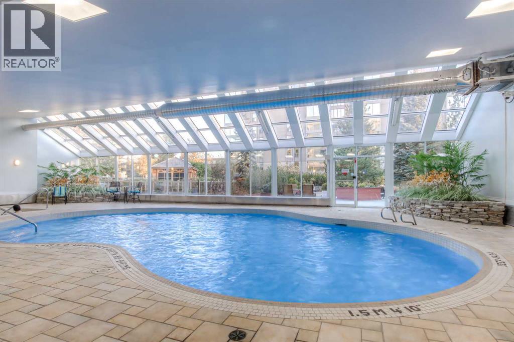 Penthouse condominium home in the lovely Varsity Towers. This top floor unit provides a beautiful living space and expansive distant views to the south and west that include the mountains, an overlook of Varsity, and the river valley. Excellent floor plan that provides an open plan and comfortable divided spaces. A Large kitchen with granite counters and quality built-in appliances connects to a very lovely sunroom with views to the south and west. The generous living room is warmed by a gas fireplace. Apart from the living spaces, a hallway leads to 2 large bedrooms and an office (easy conversion to 3rd bedroom if desired). The primary bedroom is very generous and has a gas fireplace, a walk-in closet, a large 5pc ensuite bath that includes a steam shower, and a south facing deck space. There is a separate laundry room and in-suite storage off the main hallway and the 4pc main bathroom. The home is excellent! Abundant amenities: Roof top patio (stairway directly outside the unit door) for enjoying the view, sunning, or a bbq., a beautiful indoor pool, exceptional private garden spaces, a well equipped gym, theatre/games room, library/study room, warm lobby spaces, car wash. In addition, this home comes with 2 indoor parking spaces (the 1st is as close to the elevator as possible) and a large private storage room (9ftx5ft). This home and the property together offers excellent value by every measure. Great lifestyle. (id:6769