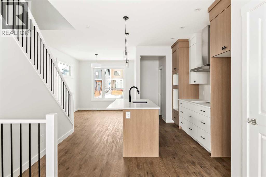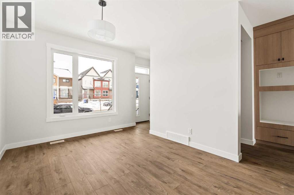 Welcome to the 'Oak' by Brookfield Residential, a beautifully crafted semi-detached home tucked into Calgary’s newest community, Starling. Thoughtfully planned and rich with natural light, this residence blends style, function, and future potential in a way that feels instantly welcoming. Step inside to a layout that truly works for everyday life. Centered around a bright, well-appointed kitchen, the main floor offers seamless flow between the front dining area and the spacious rear living room. The gourmet kitchen package elevates the space with a large central island, ideal for gathering, prepping, or hosting with ease. At the back of the home, the great room frames peaceful views of the backyard and the park beyond, with a full wall of windows and patio doors keeping the space sunlit from morning to sunset. Upstairs, an airy bonus room anchors the second floor, thoughtfully separating the primary retreat from the secondary bedrooms. The primary suite feels like a quiet getaway, featuring a windowed walk-in closet, and a private ensuite complete with dual sinks and a walk-in shower. Two additional bedrooms, a 4-piece bathroom, and a conveniently located laundry room ensure the upper level meets the needs of families, guests, or home office setups. The lower level opens up a world of opportunity. With a private side entrance and basement rough-ins already in place, the space is ready for future development, whether you're envisioning a suite (subject to City of Calgary approval), recreation area, or additional living space. Built with quality in mind and backed by both full builder warranty and Alberta New Home Warranty, this home delivers peace of mind with every detail. In Starling, you’re not just buying a home - you’re choosing a place designed to grow with you. (id:6769