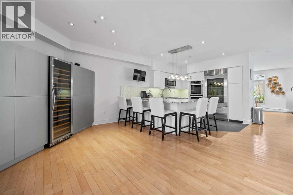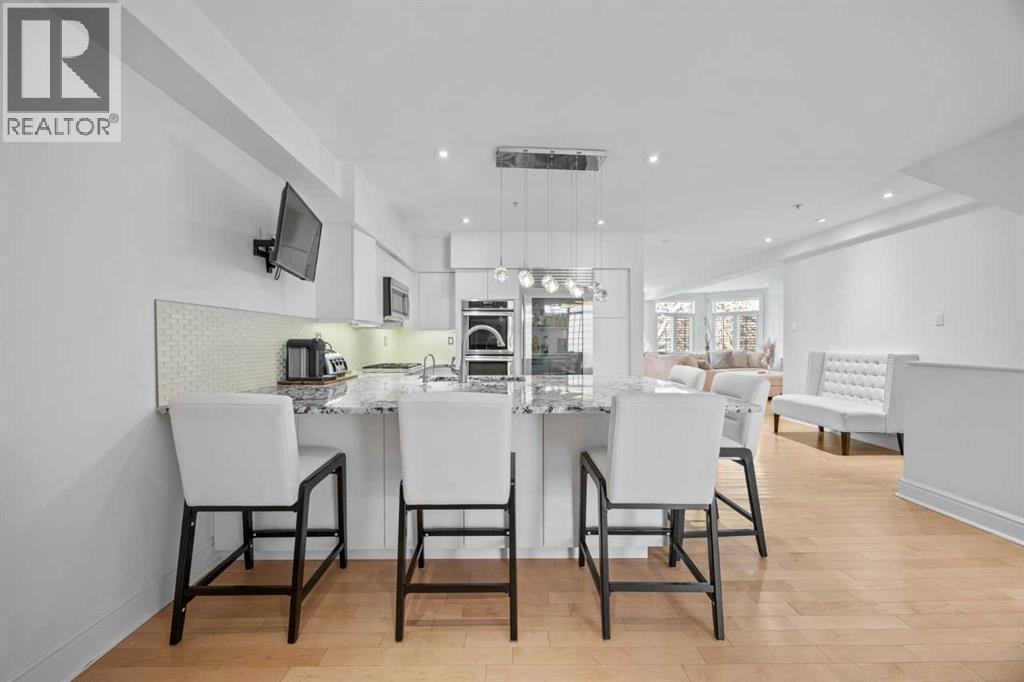 PRIVATE RIVER FRONT TOWNHOME!! LOCATION, LUXURY, LIFESTYLE — Welcome to the Crown Jewel of Prince’s Island Estates. Experience the epitome of refined urban living in this extraordinary RIVERFRONT TOWNHOME ideally situated in the heart of PRESTIGIOUS Eau Claire. This exclusive executive END UNIT is THE premier unit offering unmatched sophistication, privacy, and panoramic CITY & RIVER VIEWS from every level. Boasting over $250,000 in HIGH END renovations, this residence combines modern elegance with timeless design. You will LOVE the 4 expansive balconies that are the LARGEST in the development and the DIRECT PRIVATE access from your 2 UNDERGROUND PARKING STALLS DIRECTLY into this home. A gated front entry ensures heightened privacy and security, while the vibrant energy of downtown Calgary is mere steps away — enjoy instant access to the Bow River pathways, world-class dining, upscale boutiques, and an endless array of amenities. A private front patio welcomes you into a bright main floor where style and function blend seamlessly. The chef-inspired kitchen is a masterpiece, featuring striking GRANITE countertops, high-end stainless steel appliances including a GAS range and professional-grade refrigerator, chic pendant lighting, a bar fridge, and extensive full-height custom cabinetry. An elegant formal dining area flows into a grand living room with a feature marble accent wall, creating an ideal space for entertaining guests in style. Every inch of this home has been meticulously crafted to impress. Upstairs, the second level hosts two generously-sized bedrooms, each with ample closet space and fully renovated spa-inspired bathrooms complete with IN FLOOR heating, modern tile work, granite counters, and luxury finishes. The primary suite features its own private balcony overlooking tranquil river paths. The third level offers a versatile bonus room — perfect as a home office, media room, or 3rd bedroom — along with not one, but two spectacular balconies. One offer s sweeping downtown skyline views, while the other is a sprawling private terrace backing onto Prince's Island Park + the seller has engineering approval that this deck can SUPPORT A HOT TUB!! Welcome to your own personal oasis. Homes like this do not come up often!! Don’t miss this amazing opportunity to own your DREAM HOME in one of Calgary’s most coveted communities. This unique property features a full time property manager & grounds keeper + ALL UTILITIES are included in your condo fees!! (id:6769