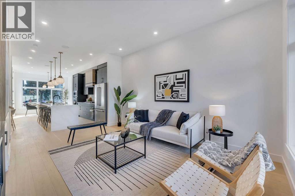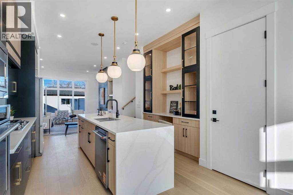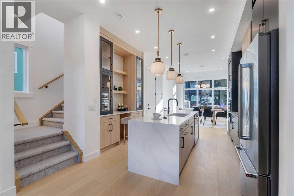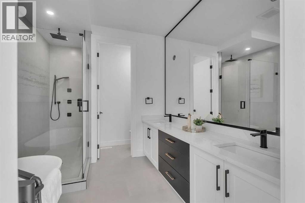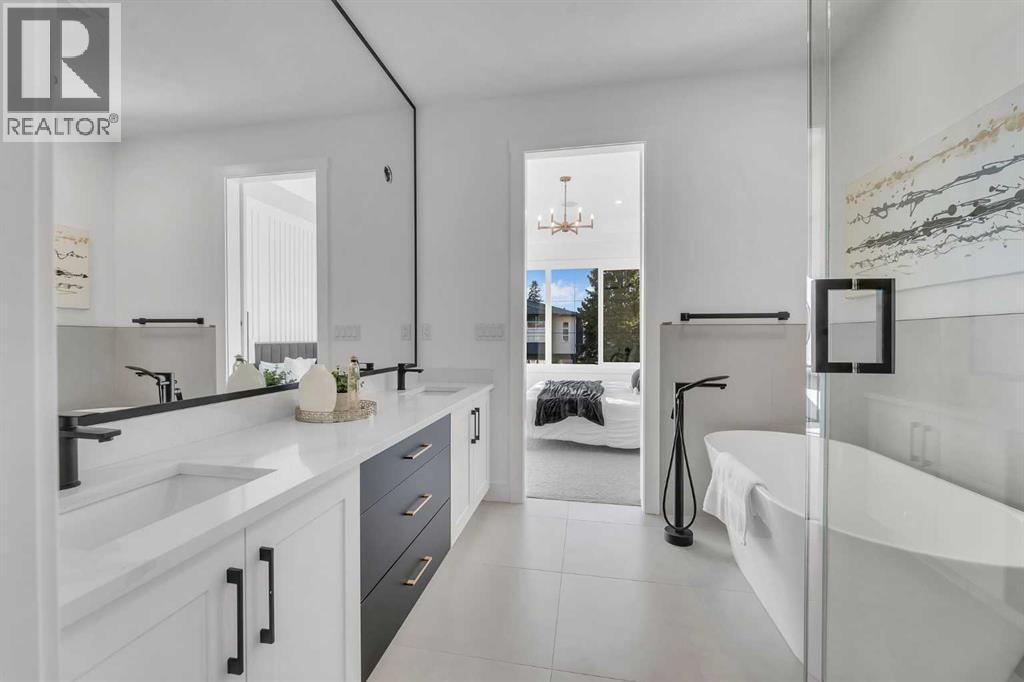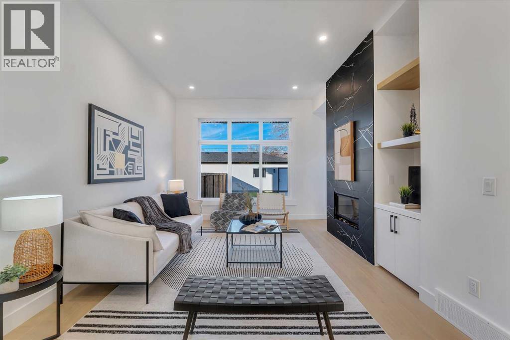 Welcome to Winston Heights Mountview! This modern infill comes with a legal basement suite with its own entrance and offers over 2250 sq. ft. of finished space. It features 5 bedrooms and 3.5 bathrooms, with high-end finishes throughout. The main floor has 10’ ceilings, big windows, an open dining area, and a stylish kitchen with quartz counters, a large island, and KitchenAid stainless steel appliances. The living room includes a gas fireplace, built-in shelves, and access to the patio. Upstairs you’ll find the primary bedroom with a 5-piece ensuite and walk-in closet, plus two more bedrooms, a full bathroom, and laundry. The basement has 9’ ceilings and a fully legal 2-bedroom suite with its own kitchen, living space, and laundry—great for family or rental income. This home also includes a double garage, downtown views from the front, and an excellent location close to schools, parks, shops, and just minutes from downtown. One of biggest backyards in this area. (id:6769