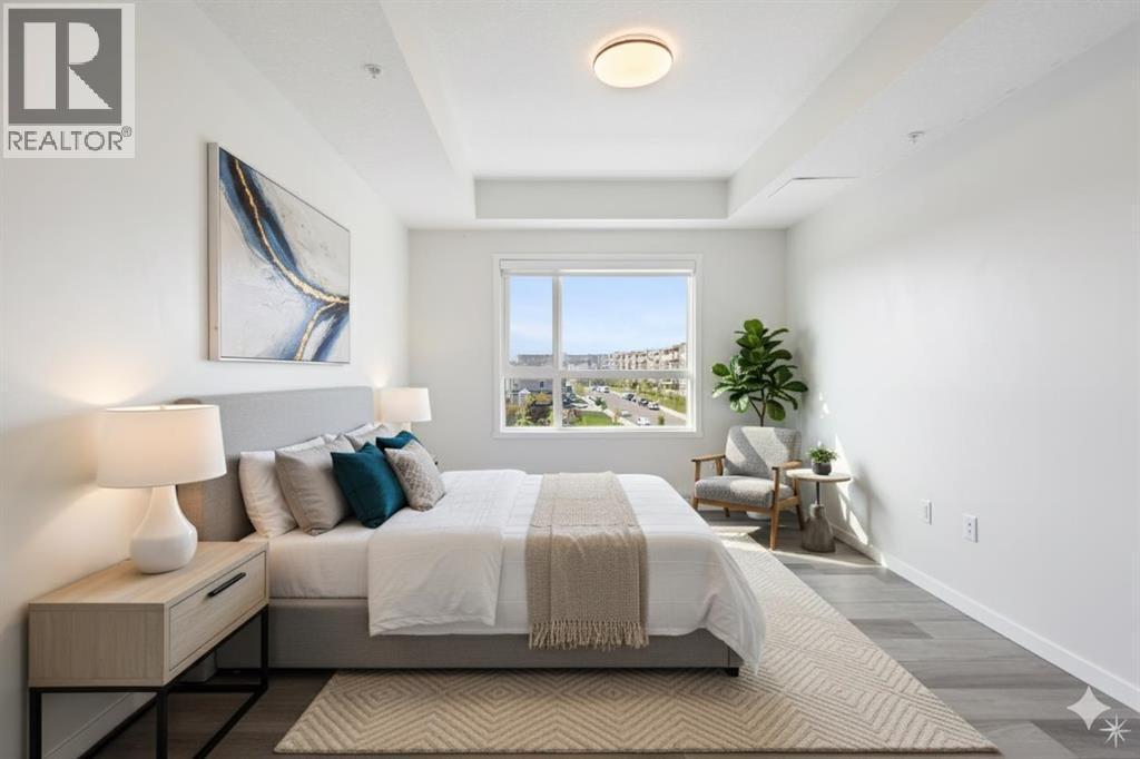 Step inside this bright and spacious 3-bedroom, 2-bathroom condo at the Pinnacle in Harvest Hills, where everyday comfort meets convenience. With 1,188 sq ft of thoughtfully designed living space, the west-facing windows and 9-foot ceilings fill the home with natural light from morning to evening.The open-concept kitchen, complete with quartz counters, stainless steel appliances, and a large island, flows seamlessly into the dining and living areas—perfect for shared meals, entertaining friends, or simply relaxing at the end of the day. The primary suite features a walk-through closet and a private ensuite with dual sinks, while two additional bedrooms provide flexibility for guests, family, or a home office.Enjoy the ease of air conditioning, in-suite laundry, and luxury vinyl plank flooring throughout. A covered balcony offers a sunny retreat for coffee or evening conversations. Titled underground parking adds security and convenience year-round.Located steps from parks, schools, restaurants, and shopping, and just minutes to major routes and the airport, this is more than a condo—it’s a lifestyle in one of North Calgary’s most connected communities. (id:6769