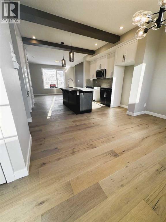 IMMEDIATE POSSESSION, END UNIT, SIDE ENTRY TO BASEMENT. DOUBLE DETACHED GARAGE, DECK, FENCED AND LANDSCAPED, NO CONDO FEES. INTERIOR PICTURES ARE OF SAME MODEL, NOT SUBJECT PROPERTY. Welcome to the "St. Andrews" townhome, by Award winning, Master Builder, Douglas Homes Ltd. From the front covered porch, the entry opens onto the spacious great room with 9ft ceiling and gleaming hardwood floors throughout the main floor. The aspiring chef will appreciate the well planned "island" kitchen. From the upgraded 42 inch, soft close cabinets, to the gorgeous quartz countertops, everything is within easy reach. The sparkling stainless steel fridge, the glass top, self cleaning electric range, dishwasher, and over the range microwave/hoodfan are all just an arms length from the kitchen sink. Opposite side of the island, provides a convenient pantry, and desk with upper cabinet for all those recipe books you will collect. The spacious dining area features a large picture window looking out upon the back yard with room for the kids to play, with a rear entry door to the deck for those summer bbq's. Here also is a 2pc powder room for your guests convenience, and perhaps the kids hurried need. Upstairs includes 2 good sized secondary bedrooms, a 4pce bathroom with quartz vanity and tile floors, a convenient upstairs laundry, and a spacious primary bedroom with large upsized window and ensuite bath, with walk in shower, with glass front, tile floor and again a quartz vanity. The full basement provides rough in plumbing for a future bath, one window for future bedroom, and enough space remaining for a spacious future family room if you decide your family needs room to spread. All this in the desirable new subdivision Cobblestone Creek, with tennis courts, playgrounds, future school reserve, pathways and numerous green spaces, on the western edge of Airdrie, with wide open country side, and views to the west. THIS HOMES SIDES ONTO GREEN AREA. (id:6769