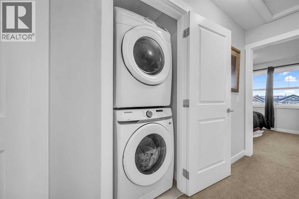 Welcome to your new home in Kings Heights! This beautifully maintained 975 sq ft two-storey townhome offers a bright open-concept layout with stunning luxury vinyl plank flooring throughout the main floor, flowing from the spacious living and dining areas into a larger-than-average kitchen featuring quartz countertops, stainless steel appliances, and plenty of counter and cabinet space, perfect for cooking and entertaining. A convenient two-piece bathroom completes the main level. Upstairs, two generous primary bedrooms each with its own ensuite, ample closet space, and large windows that fill the rooms with natural light, along with upper-floor laundry for added convenience. The tandem double garage below provides room for two cars or extra space for storage, a gym, or a workshop. Recent updates include a new garbage disposal (May 2024) and a brand-new washer (September 2025). Located in the sought-after, family-friendly community of Kings Heights, close to schools, parks, restaurants, and shopping, with a new overpass into Airdre, tons of extra street parking, this home combines comfort, style, and exceptional value. Welcome home! (id:6769