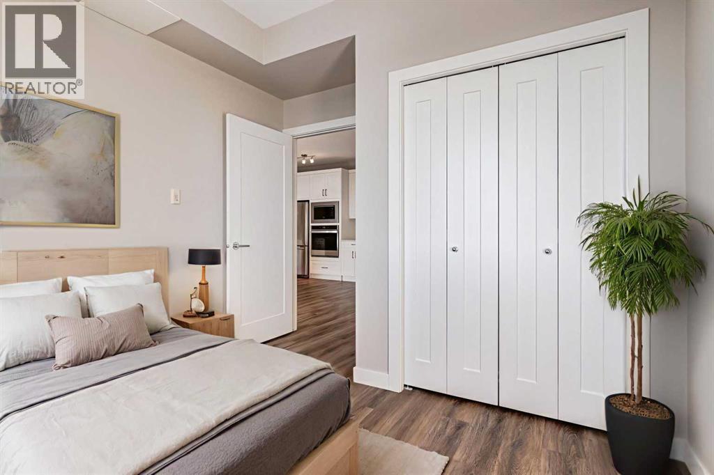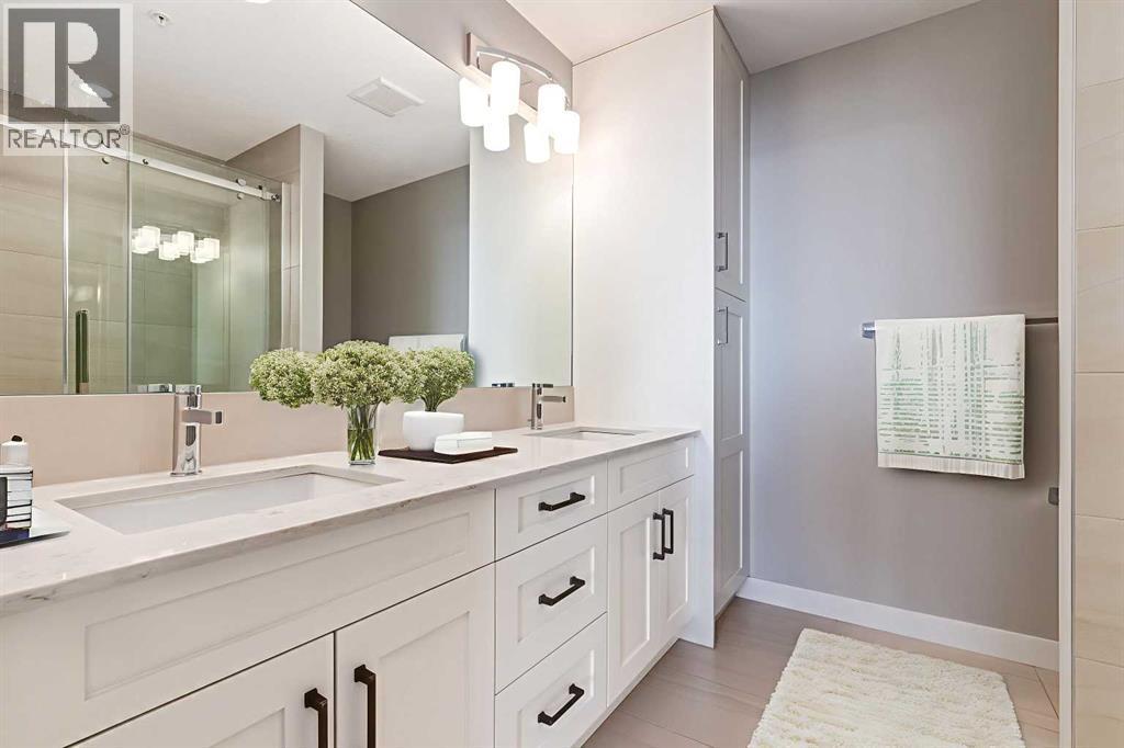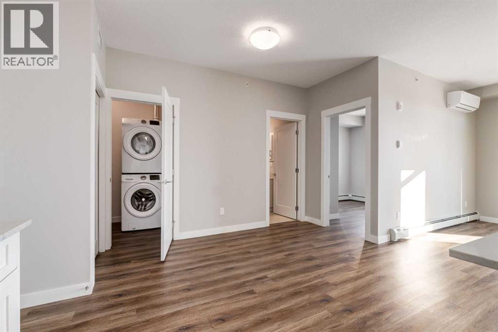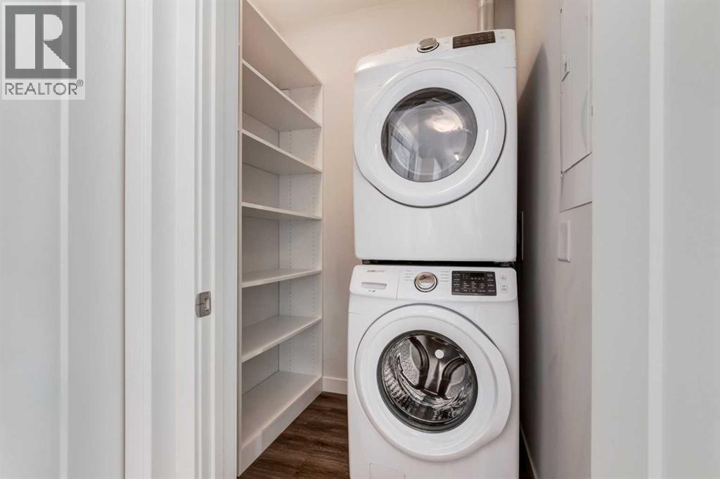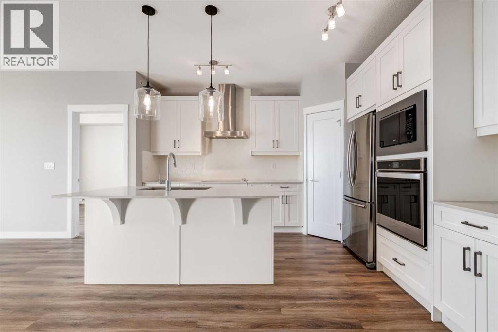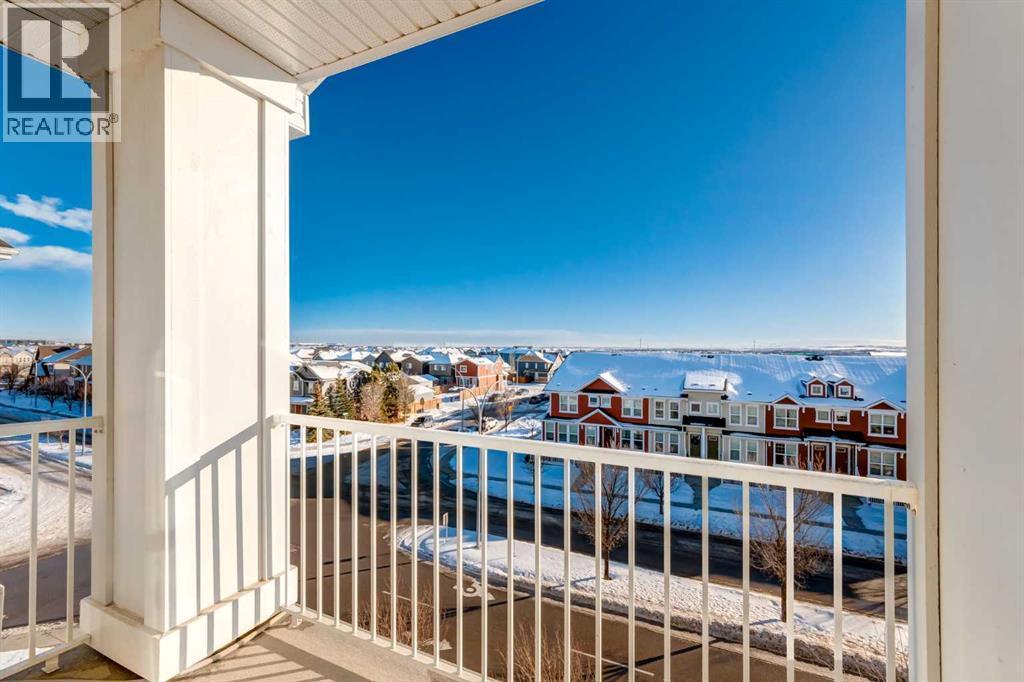 Beautifully upgraded top-floor 2 bedroom, 2 bathroom home in sought-after Cranston Ridge by Cardel Lifestyles offering exceptional natural light, premium finishes, and the convenience of 2 titled parking stalls—one underground and one surface—plus assigned storage. This bright and inviting unit features a stunning chef’s kitchen with a built-in wall oven and microwave, electric cooktop, generous pot drawers, white quartz countertops, a corner pantry, porcelain tile backsplash, and a large island accented with dual glass pendant lights. Luxury vinyl plank flooring extends through the main living areas and both bedrooms, creating a seamless modern aesthetic. The spacious primary bedroom includes a walk-through closet with custom organizers and leads to a beautifully appointed ensuite featuring double sinks, an upgraded vanity with drawers, full tile glass shower, porcelain tile flooring, linen storage, and matching white quartz counters. The second bedroom and full bathroom are ideal for guests, roommates, or a home office, offering the same elevated style and quality. Enjoy a spacious southeast-facing balcony with lovely views of the foothills—perfect for morning coffee, relaxation, and taking in Alberta’s open skies. Additional features include a full-size front-load washer and dryer, built-in shelving in the laundry room, and central air conditioning for year-round comfort. This top-floor unit provides privacy, upgraded living, and low-maintenance convenience in a well-managed, pet-friendly complex within the desirable community of Cranston. Close to scenic pathways, schools, shopping, Seton amenities, South Health Campus, and easy access to Deerfoot and Stoney Trail. Immaculate, thoughtfully designed, and move-in ready—this beautiful home offers exceptional value and lifestyle in one of Calgary’s most popular neighborhoods. Book your private showing today. (id:6769