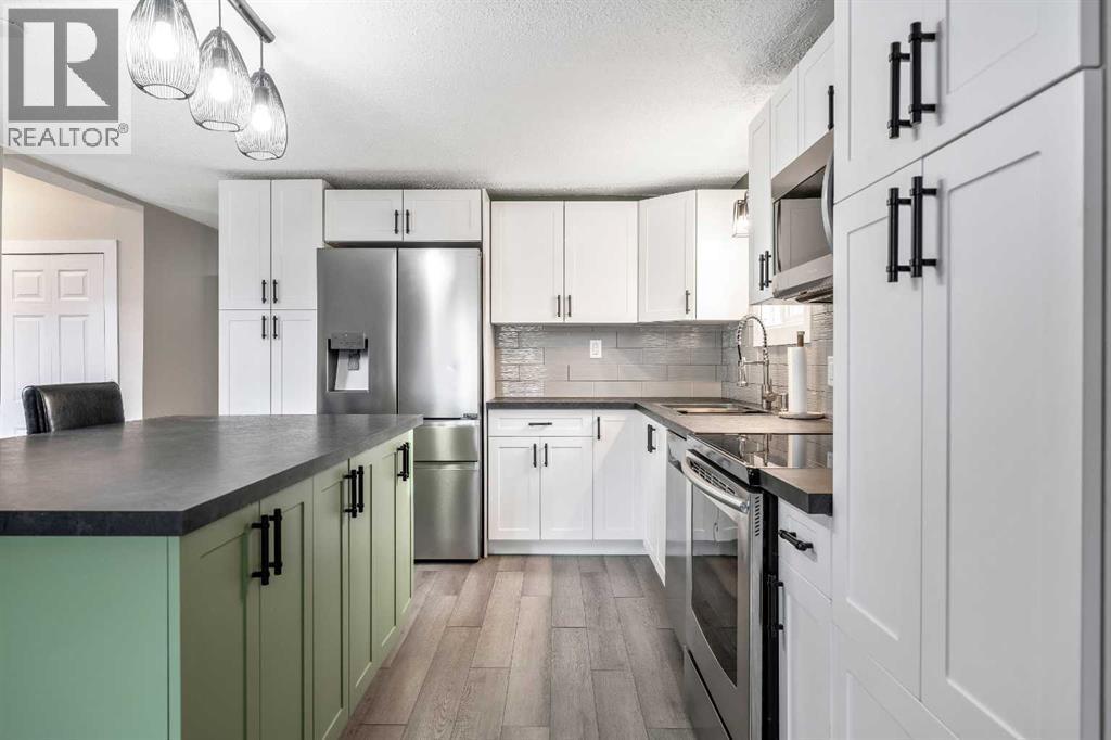 ***OPEN HOUSE DECEMBER 14TH 2-4PM*** Sitting on a huge pie-shaped lot just under 8,000 sqft, this fully redone property is perfect for anyone who loves space, privacy, and the freedom to work on projects. The double detached garage offers plenty of room for vehicles, tools, or hobbies, while the sprawling backyard is ideal for hosting summer BBQs or relaxing around a cozy firepit. With no homes directly behind and backing onto Brentwood Elementary School, this location truly has it all. The roof was also redone within the last two years. Step inside and you’ll be amazed by the transformation—this home has been completely renovated from top to bottom. Featuring new drywall, vinyl plank flooring throughout, upgraded doors, and all-new appliances, no detail has been overlooked. The kitchen has been fully redesigned with ample cupboard space, a moveable island with extra storage, and modern finishes. It’s truly a chef’s dream, perfect for cooking your favourite meals while entertaining guests. The interior offers a bright, functional layout with two bedrooms plus a versatile den or office, ideal for working from home. Off the den, step onto your newer deck—an inviting spot to enjoy your morning coffee or take a break during the day. The 4-piece bathroom features a soaker tub, walk-in shower, and a stylish vanity with ample storage, all beautifully finished with elegant tile. Down the hall, the spacious laundry room provides plenty of room for organization and everyday convenience. The primary bedroom easily accommodates a king-size bed with additional space for a reading nook or sitting area, while the second bedroom is perfect for a child, guest, or nursery. Outside, the expansive, fully fenced backyard is lined with mature trees, offering privacy and tranquility. The garage includes extra storage, and there’s an additional shed behind it for even more space. Located close to parks, pathways, the Strathmore Aquatic Centre, sports fields, golf course, shopping, restaur ants, and the Strathmore District Health Services, this home combines small-town charm with everyday convenience. Homes like this don’t come up often—book your showing today before it’s gone! (id:6769