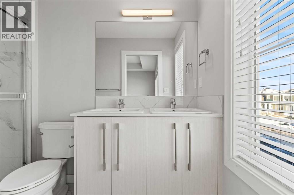 Welcome to this beautifully designed half-duplex with a legal secondary suite, perfectly situated in the growing northeast community of Cornerstone. The main level offers an inviting open-concept layout with a bright living area, dedicated dining space, and a modern kitchen complete with a central island, quartz countertops, stainless steel appliances, a gas range, and a pantry — ideal for everyday living and effortless entertaining. The upper level features three well-sized bedrooms, including a comfortable primary retreat with a walk-in closet and a 4-piece ensuite with dual sinks. A second full bathroom, convenient upper-floor laundry, and a versatile bonus area provide functionality for a home office, playroom, or additional lounge space. The legal one-bedroom basement suite includes its own kitchen, living room, 4-piece bathroom, and in-suite laundry, and is currently tenant-occupied, offering an excellent option for added rental income or a strong investment opportunity. A double detached garage adds everyday convenience, and the location offers quick access to Stoney Trail, Country Hills Blvd, shopping, parks, and schools. A fantastic opportunity for both homeowners and investors in one of Calgary’s fastest-growing communities. (id:6769