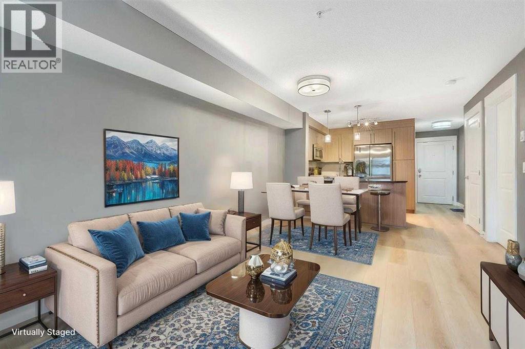 Welcome to your next home in Mahogany—one of Calgary’s most sought-after lake communities, where convenience, comfort, and year-round recreation come together. Located in the well-designed 51 Oak complex, this third-floor condo offers a wonderful blend of modern style and effortless living. Almost new and built around a beautifully landscaped central courtyard, the development features three thoughtfully arranged buildings that create a quiet, welcoming atmosphere from the moment you arrive. Inside, 2 bed home is bright, spacious, and impressively functional. Fresh new flooring installed in 2024 adds a clean, updated feel throughout. The open kitchen is designed for everyday ease—complete with sparkling stainless steel appliances (including a fridge with water and ice), granite countertops, a deep double sink with a bistro-style faucet, tall cabinetry, and a stylish subway tile backsplash. A convenient breakfast bar connects the kitchen to the main living area, creating an inviting space for both relaxing and entertaining. Large windows fill the home with natural light and offer a lovely view of the quiet courtyard below. The bathroom features a modern vessel sink and a deep soaker tub—ideal for unwinding at the end of the day. You’ll also enjoy the practicality of an in-suite stackable front-load washer and dryer. Step outside onto the spacious balcony, perfectly sized for enjoying a morning coffee, an evening beverage, or a bit of fresh air any time of day. Parking and storage are easy with your titled underground stall and attached storage locker—keeping your gear, tools, and seasonal items secure and out of the way. Living in Mahogany means having access to an incredible list of amenities: lake access for swimming, skating and fishing, beautifully maintained beaches, tennis courts, scenic ponds, endless walking trails, and vibrant community events. Shops, restaurants, groceries, and services are just minutes away, making day-to-day life simple and enjoyable. If you’ve been searching for a well-maintained, move-in-ready condo in a community that offers more than just a place to live, this home at 51 Oak delivers the lifestyle you’ve been waiting for. (id:6769