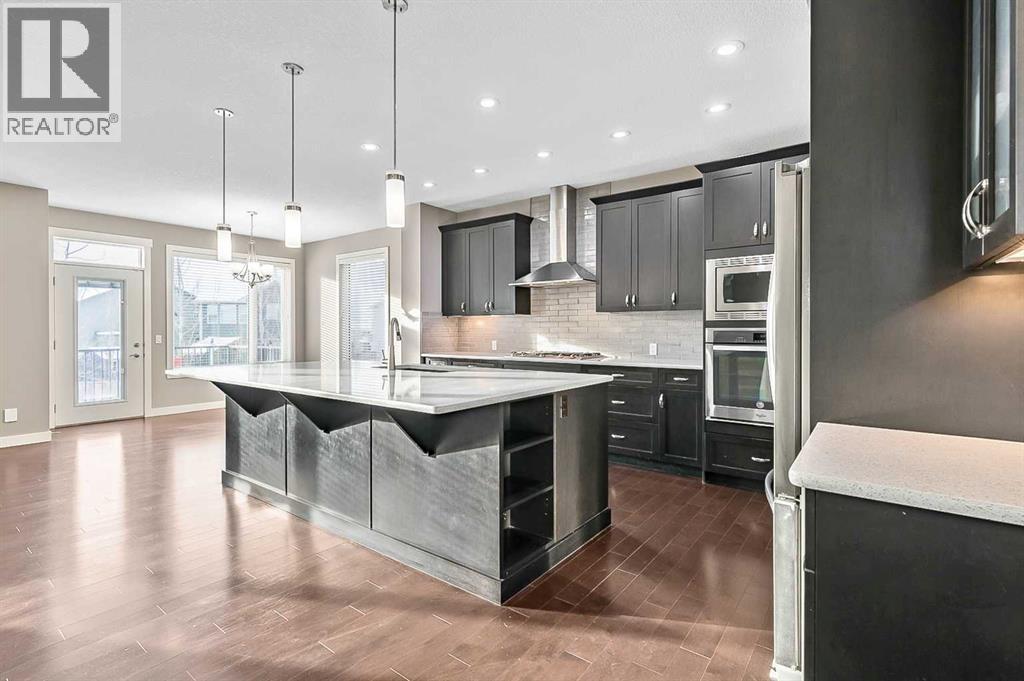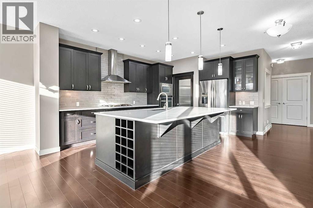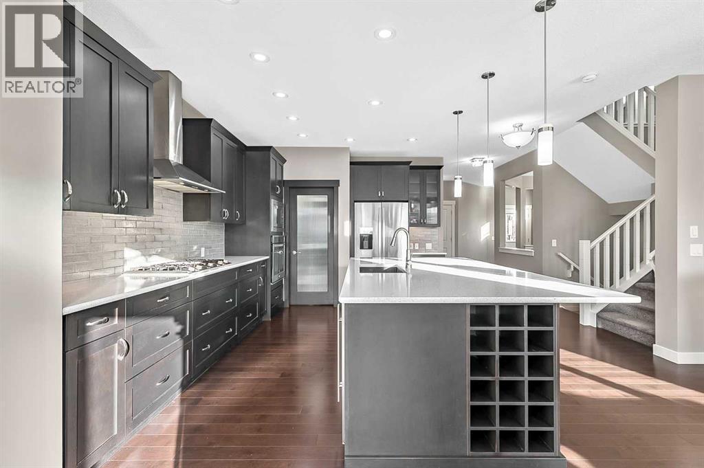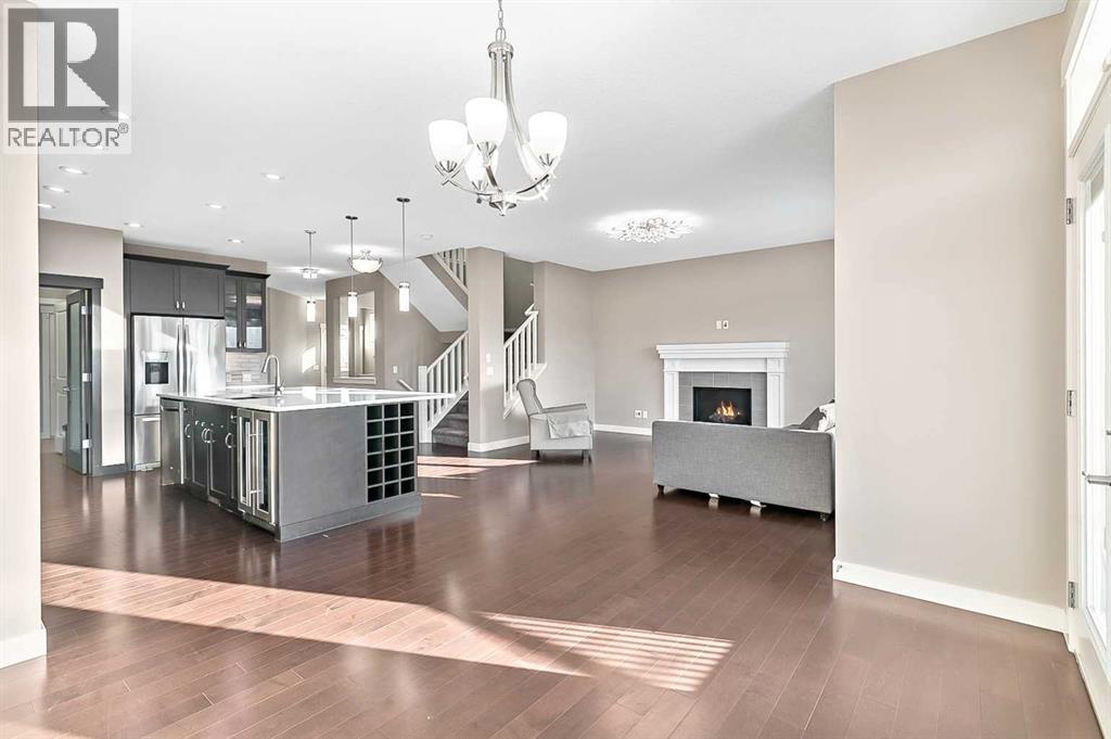 Welcome to 90 Mount Rae Heights in Mountain View! This beautiful 2429.5 sq. ft. (living space above grade), two-story home offers 4 bedrooms, a bonus room with skylights, plus an oversized double garage and is ready for you to move in. Showcasing a well-thought-out floor plan with no wasted space, the bright, open-concept layout, enhanced by NATURAL light flows seamlessly into each space through all the oversized, south-facing windows. Enjoy style and perfection throughout each floor: beautiful hardwood flooring an inspired family kitchen with an oversized, family-size island featuring a sink, wine fridge, built-in dishwasher & storage, premium stainless-steel appliances, 5 burner gas top, built in oven and microwave, sleek dark cabinetry, quartz countertops, a walkthrough pantry to the mudroom with a doggy shower, and access to the oversized double garage. The main floor also offers, a den at the front entrance, a living room with a stunning ceiling-mount light and a gas fireplace to cozy up to through the winter months. The dining room provides ample space to comfortably accommodate large family gatherings and access to the deck. The upper level features a spacious bonus room with skylights and a semi-vaulted ceiling. The primary bedroom includes a 5-piece bath and a walk-in closet—a perfect place to start or end your day. 3 more nicely sized bedrooms, a 5-piece bath, and a laundry room complete this level. The unfinished basement awaits your future development. All of this is located in a great location and a family neighborhood. This is a home to fall in love with and make it your New Year's wish! (id:6769