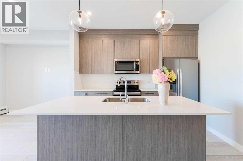 Welcome to 3613, 60 Skyview Ranch Road NE — a bright and thoughtfully designed 2-bed, 2-bath condo offering 708.99 sq ft of modern, comfortable living. This inviting home features durable vinyl plank flooring throughout, tile in both bathrooms, and an abundance of pot lights that enhance the clean, contemporary feel. Large windows fill the space with natural light, creating a warm and open atmosphere. The kitchen is stylish and functional, complete with stainless steel appliances including a microwave hood fan, stove, refrigerator, and dishwasher. Stone countertops, generous drawers, and a convenient breakfast bar make this space perfect for cooking, hosting, or enjoying a relaxed morning coffee. The primary bedroom includes a walk-in closet and a private ensuite with a spacious walk-in shower. The second bedroom is well-sized, with the nearby full bathroom offering a tub/shower combo — ideal for guests or roommates. In-suite stacking laundry adds everyday convenience. This unit includes a titled underground parking stall, access to bicycle storage, and the building features two elevators for easy movement throughout. The community also offers a lovely picnic area, perfect for enjoying sunny days outdoors. Located with quick access to Metis Trail, Stoney Trail, and Deerfoot Trail, commuting is seamless, and you’re just a short drive from the shopping, dining, and entertainment at CrossIron Mills. A great opportunity for first-time buyers, downsizers, or investors looking for comfort and convenience in a well-connected location. (id:6769