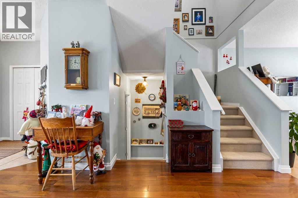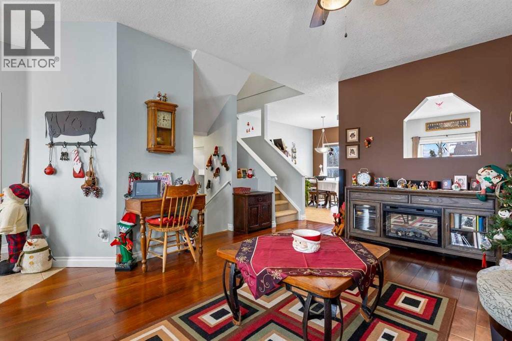 Welcome to this inviting Citadel home featuring a BRIGHT WALKOUT BASEMENT, a DOUBLE GARAGE, and the comfort of CENTRAL AIR CONDITIONING—perfect for year-round living. Offering more than 2,000 sq.ft. of thoughtfully designed space, the main floor opens with a welcoming foyer flowing into the living room finished with beautiful MAIN FLOOR HARDWOODS, while the bright kitchen and dining area and a breakfast bar featuring CERAMIC TILE FLOORS and are filled with natural light. Crisp white cabinetry and stainless steel appliances including a HIGH-END GAS RANGE create a clean modern feel, centered around the cozy living area fireplace ideal for family gatherings and relaxed evenings. Upstairs, the spacious primary bedroom offers a peaceful escape complete with a sparkling ensuite featuring a glass shower and soaker tub—perfect for unwinding under the stars. Two additional bedrooms provide comfortable space for family or guests. The DEVELOPED WALKOUT BASEMENT offers versatility for a studio, office, gym or media room with direct access to the yard. Fire up the BBQ on the upper deck as the kids play below on the low-maintenance synthetic lawn and enjoy your above ground vegetable garden. All of this is located close to parks, pathways, schools and multiple shopping options—an ideal blend of convenience and community. Water tank, furnace & A/C all new in 2023 , shingles are 10 years old and the condo board is replacing all windows and the patio door in spring 2026. (id:6769