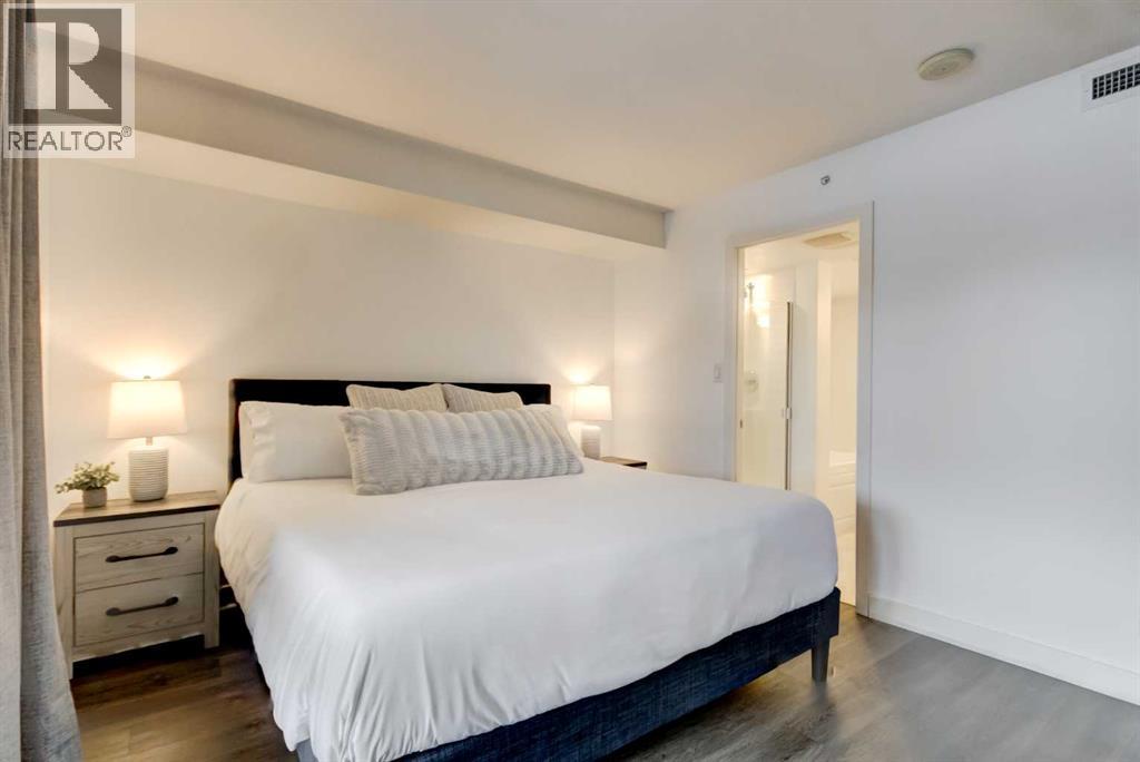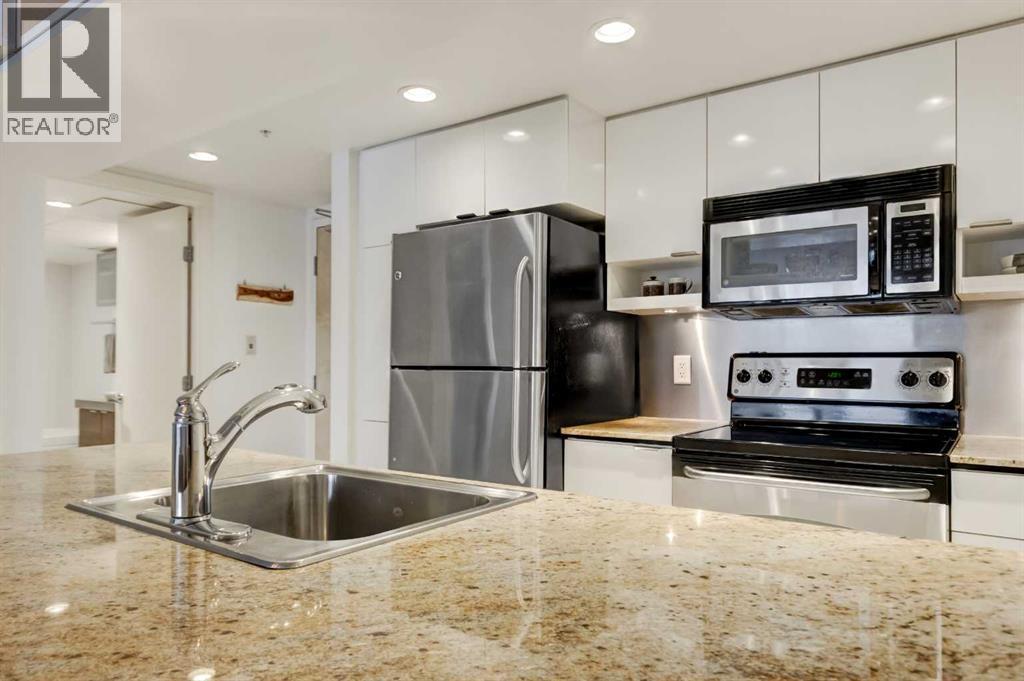 Welcome to this bright & beautifully designed 1-bedroom plus den home featuring a large west-facing balcony that spans the full width of the unit - relax as you watch the sunset! The open-concept layout is filled with natural light, creating an inviting & airy living space. The kitchen offers granite countertops, crisp white cabinetry & an extended eating bar, making it ideal for cooking, casual meals & entertaining. The spacious living/dining room easily accommodates a full dining table, offering flexibility for both daily living & hosting. The king-sized primary bedroom provides comfort & room to spare & the cheater ensuite boasts a soaker tub & separate shower. Imagine working from home in your den that overlooks the balcony through floor-to-ceiling windows & is generously sized to fit a queen bed, making it an excellent guest room, office, or multipurpose space. Located in a well-constructed concrete building, this home features durable vinyl plank flooring, adding style & practicality. Included is one titled underground parking stall & a separate storage locker for added convenience. Residents enjoy an impressive array of amenities, including concierge service, a fitness centre, a guest suite, a social room, & underground visitor parking. All of this is just steps from grocery stores, boutique shopping, restaurants, coffee shops, & pubs—offering an unbeatable urban lifestyle. Welcome home! You’ll love living here!!! (id:6769