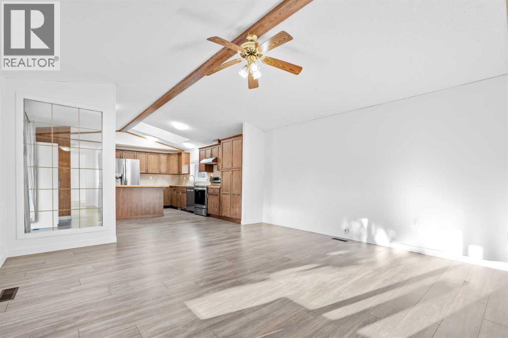 Welcome to Greenwood Village. This 3 bed, 2 bath, 1,221 sf mobile home is truly move-in ready. All upgrades and updates have been done and you will love the bright, open floorplan. It has been meticulously maintained, presenting in excellent condition. Upon arrival, you will notice the double carport, providing parking for up to four vehicles. The spacious, fully fenced yard is adjacent to a playground, one of several within Greenwood Village. The well-appointed entry leads to two bedrooms and a bathroom at the front of the home, a generous living room with vaulted, beamed ceiling, large windows, and laminate flooring throughout. The kitchen benefits from a skylight that fills the space with natural light, ample cabinetry, a sizable island offering extra storage, and patio doors opening onto a large deck. The primary bedroom includes a four-piece ensuite, walk-in closet, and accommodates a king-size bed. The additional bedrooms are also spacious, and the front bedroom offers a Jack-and-Jill three-piece ensuite. A separate laundry room with a sink adds further convenience. Recent improvements include a new Furnace and Central Air Conditioning (Fall 2023), a Stainless Steel appliance package (Fall 2022) featuring a double-door refrigerator with bottom-mounted freezer, water, and ice dispenser, as well as a newer hot water tank, Vacu-Flo system, and a recently constructed double carport. The kitchen patio doors lead to a substantial deck equipped with a Weber BBQ. The home is conveniently located minutes from Greenwich Village, renowned for its Farmers Market West, and provides easy access to Stoney Trail Ring Road for citywide travel and Highway 1 for trips to the mountains. The monthly lease fee of $1,375 covers water, sewer, garbage pickup, and snow removal. Greenwood Village offers a clubhouse with activities throughout the year and is serviced by Calgary Transit and a school bus route. Lease approval is required, and pets are permitted upon approval. (id:6769