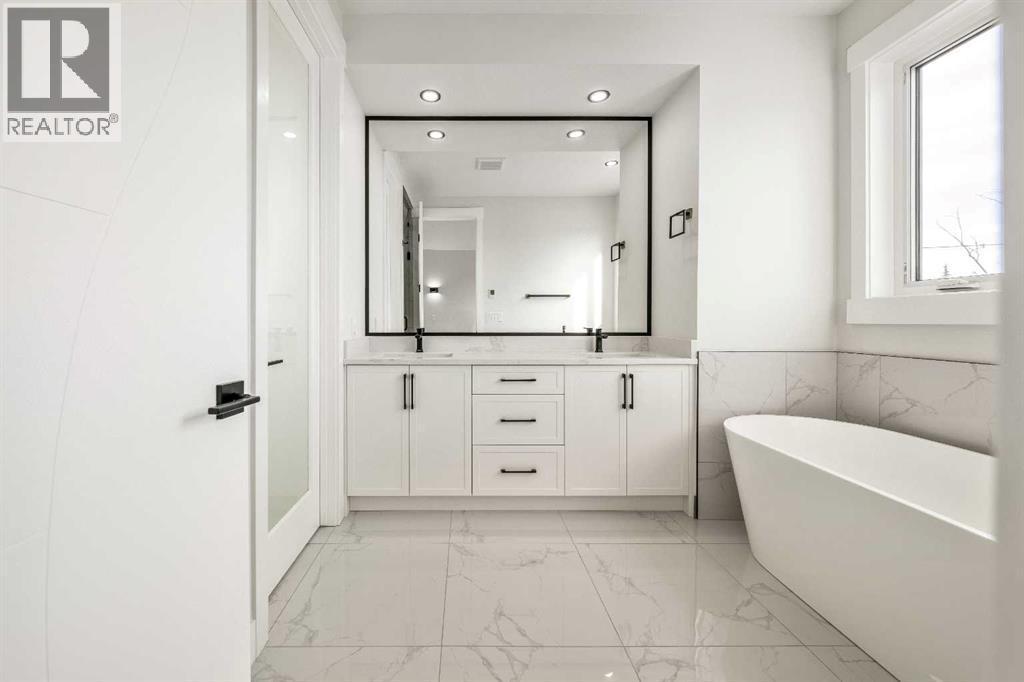 Welcome to the lap of luxury in Rosscarrock. This beautifully appointed infill (construction completion in early 2026) is within one kilometre walking distance to Westbrook C-train station, Westbrook mall, E-MART, Walmart, Starbucks, and many pubs/restuarants which makes it an ideal location with its 2 BEDROOM BASEMENT LEGAL SUITE. Have Kids with allergies? NO CARPETS THROUGHOUT. The Main floor has 10’ CEILINGS, wide front entrance, an enormous dining area to fit a harvest table, luxurious kitchen with quartz backsplash, 14' long island with a magnificent quartz countertop and dual waterfall feature and cabinet doors on both sides (plenty of storage space for all your small kitchen appliances), a show-stopping "COMMERCIAL STYLE" 36 INCH GAS RANGE, Impressive 48" FRIDGE and High-end BEVERAGE COOLER in the seamlessly situated coffee bar that is open-to-above. The Living room has an opulent 50' GAS FIREPLACE with built-ins and sliding patio doors that opens to a maintenance-free, composite plank party deck. The mud room has sitting bench and hangers, and will lead a conveniently located powder room. The highlight of the top floor is the Massive Primary bedroom with vaulted ceiling, spacious WALK-IN HIS & HER closets and a spa-like ensuite which will have a tiled STEAM SHOWER, double vanity, and a free-standing tub. The top floor is completed with a laundry room with sink, two bedrooms, one which has "cheater-ensuite" access to the common 4-piece bathroom. Every main and top floor bathroom has electric in-floor heating with their own thermostat, 200 AMP SERVICE TO HOUSE ensures there is enough power for house and a legal basement suite. The BASEMENT HAS A SEPARATE SIDE ENTRANCE, access to the furnace/mechanical room is in the common area so basement tenants do not need to be bothered/notified if you have to access the mechanicals. The basement ceiling has sound reduction features in the ceiling, hookups for a private laundry, kitchen and living room (with a gas firepl ace), ITS OWN FURNACE and roughed-in in-floor heating. Did I mention TRIPLE PANE WINDOWS THROUGHOUT which are more energy efficient and improve sound insulation within the house? Other features include GFCI OUTLETS BEHIND EVERY TOILET (required for heated bidets), 200 AMP service in home, HEATED (also insulated, drywalled and painted) GARAGE WITH 200 AMP SERVICE with an EV CHARGING RECEPTACLE suitable to connect a Level 2 charging station. Photos are from a recently finished project. Taxes on completed home not yet assessed. Measurements taken from building plans and interior photos from a recent project completed by builder that will have similar finishings. (id:6769
