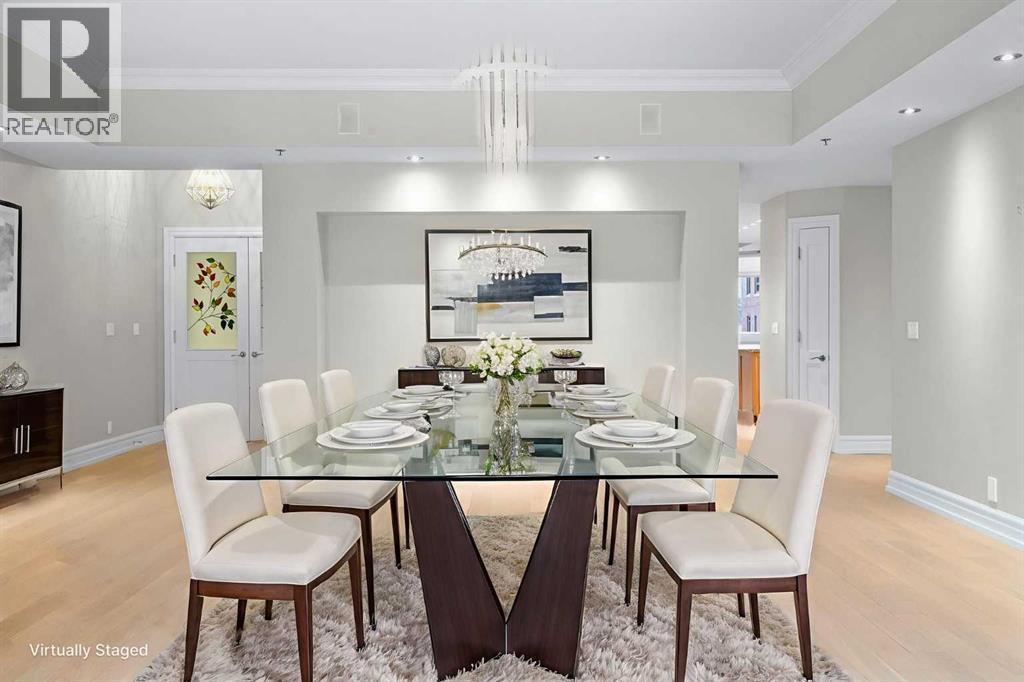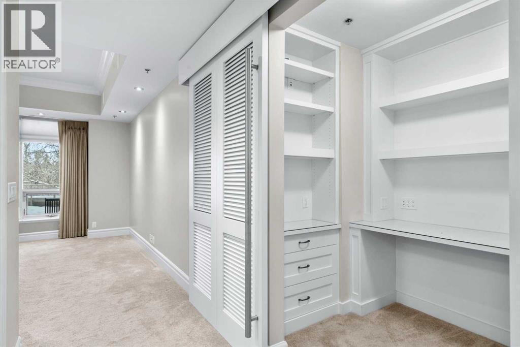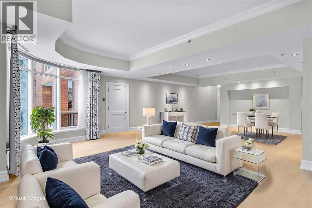 For those who value excellence, this distinctive executive residence in the Princeton Grand, a name synonymous with exclusivity, privacy, and luxury, is set amidst the most desirable residential enclave in Eau Claire. Your lifestyle will appreciate the opulent convenience of a private in-suite elevator coupled with exceptional amenities including 24 hour dedicated concierge, temperature controlled wine room with private storage lockers & tasting room, events area with full kitchen, TV’s and terrace, 2 private guest suites, a fully equipped fitness centre, yoga centre, steam room, dry sauna, showers, change room with lockers, full kitchen & bathroom, full service U/G car wash bay, bicycle storage, and a separate freight elevator. The beautifully manicured grounds create a private park-like setting, nestled along the south bank of the Bow River next to beautiful Prince's Island Park and incredible Pathway System! Walking distance to office towers, shopping, entertainment, restaurants, +15 skywalk system, transportation and the LRT, Peace Bridge, Kensington Shops and Calgary's vibrant City Center. Presenting a rare offering of 2892 sq.ft. of harmoniously appointed living space displaying the highest level of craftsmanship and luxurious interior tailoring, with pride of ownership complimenting the timeless prairie palette that flows seamlessly throughout the integrated floor plan that embraces the stunning backdrop of the Bow River. This exceptional luxury residence features a private elevator for the ultimate in convenience which opens to your stylish and spacious foyer, and then presents an exceptionally open entertaining floor plan, large floor to ceiling windows that provide exceptional natural light, with the open concept living/dining areas overlooking the private treed views to the Bow River. The master quarters overlooks the river and offers a large walk-in closet, relaxing, sensual 5 piece spa inspired ensuite with heated floors, a convenient office area and d irect access to the expansive north terrace overlooking the Bow River and Prince's Island. The very private second bedroom is totally secluded from the living areas. The bright professional-grade gourmet kitchen was designed as the epicenter of the space with direct access to the south terrace, coupled with the north terrace can accommodate gatherings of all sizes. This peaceful and park-like setting offers two spectacular and spacious outdoor living spaces, a stunning 680 sq ft covered deck overlooking the mature trees and Bow River to the north, and a second sunny south facing covered balcony off the kitchen & family room, great for year round BBQs. An exceptional floor plan that's perfect for entertaining. Home includes built-in speaker system, vacuum system, a wine fridge, 1 gas fireplace, high ceilings, large bright windows, 2 titled parking stalls and titled storage locker. Enjoy your refined lifestyle against a backdrop of luxury services, finishes and accoutrements in the Princeton Grand. (id:6769