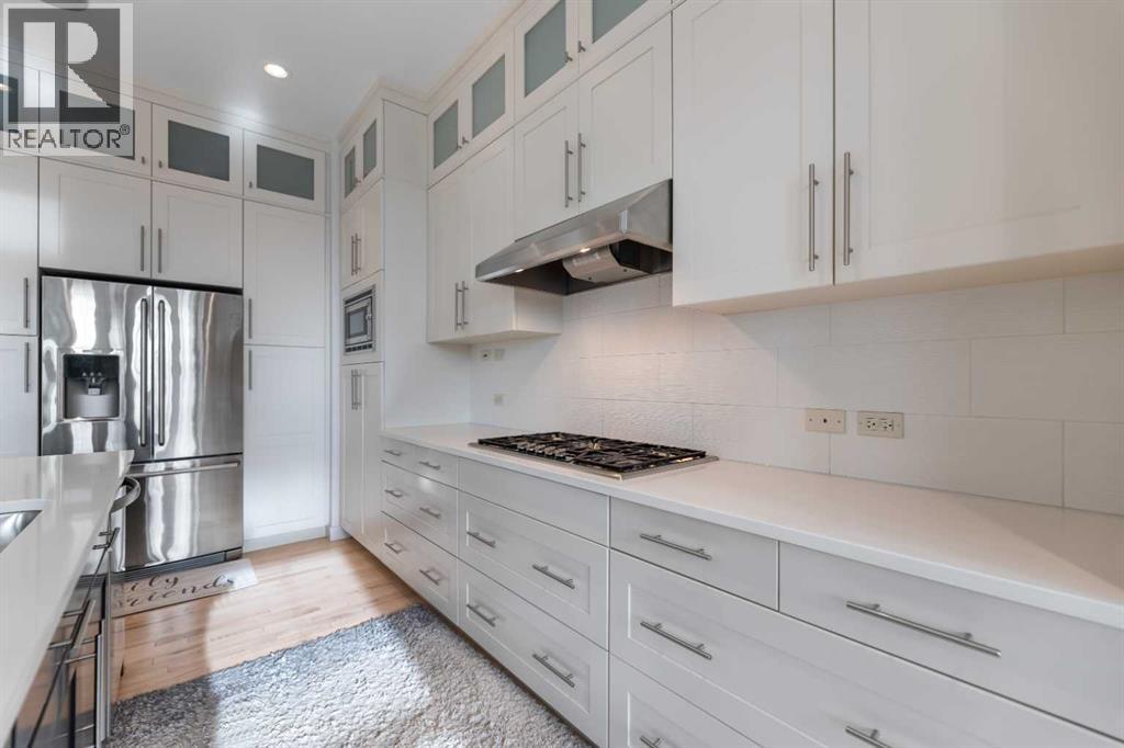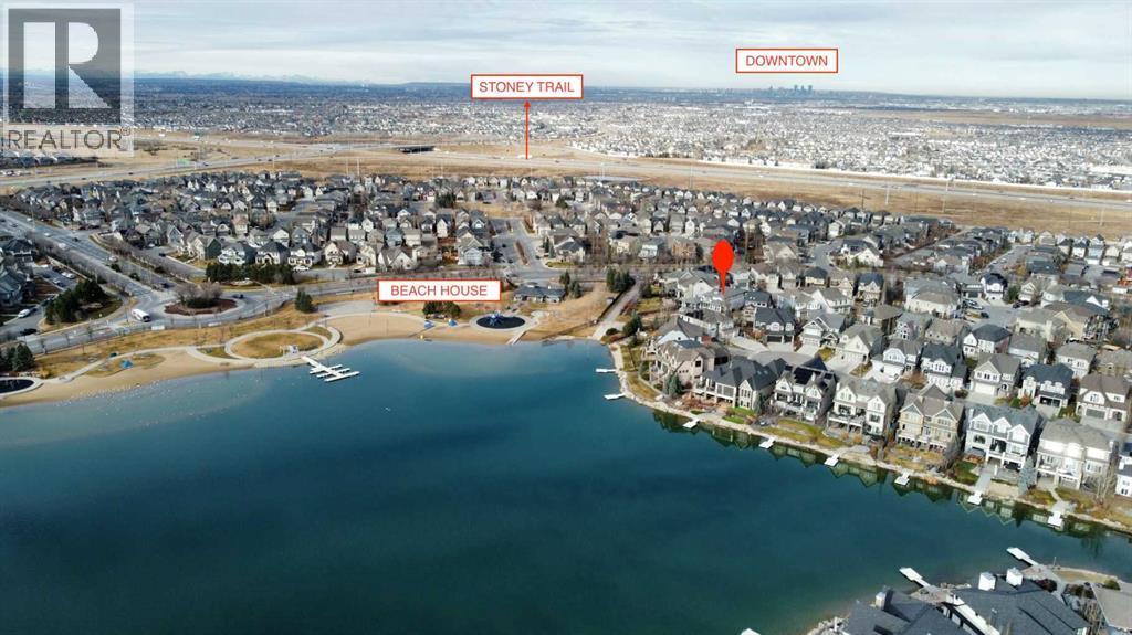 This direct lake access property in the award winning community of Mahogany enjoys a sunny south exposure and backs onto West Beach, an outstanding year round recreational anchor for the community. Situated on a quiet cul de sac, this estate quality luxury home was originally built by Baywest Homes in 2011. Since then, it has been extensively renovated and expanded, increasing the total square footage. The result is a truly luxurious and one of a kind residence set on one of the best lots in Mahogany.The home features four well sized bedrooms upstairs plus a bonus room, along with an extremely functional and well planned main floor that offers both a flex room and an office. The sunshine basement awaits your imagination. Ceiling heights are 10 feet on the main level and 11 feet over the dining room, all with flat finish ceilings. Combined with abundant oversized windows, the home feels exceptionally open, bright, and airy.The kitchen, anchoring the main floor, overlooks the glistening lake through massive windows. Beautiful hardwood floors, stunning white full height cabinetry with glass accents, a large island finished in a contrasting darker tone, and quartz countertops create a timeless and elegant space. The dining area and outdoor balcony provide seamless indoor and outdoor dining options and easily accommodate large gatherings.The living room, complete with a gas fireplace, benefits from extra windows, while the sizeable mudroom off the double front drive garage offers ample storage and can be closed off from guests for privacy.A carpeted staircase leads to the upper level, where the same carpeting continues through the hallways and bonus room. The four upper bedrooms include a spacious primary suite with lake views, large enough to accommodate any furnishings you choose. The spa like five piece ensuite features a soaker tub, double sinks on a raised vanity, and a walk in closet generous enough for two. The three additional bedrooms are all well sized and share a four piece family bath. The upper level laundry room is exceptional in both size and functionality.The south facing windows overlook the professionally landscaped yard, complete with a beautiful water fall feature. This is one of the largest and most desirable pie shaped lots in Mahogany, offering easy access to West Beach, as well as access to a shared dock. From your backyard, you are only steps from the beach and the water.Recent upgrades include porcelain tile over the vinyl deck, a high end glass railing, a covered deck with a fireplace and outdoor TV, an underground sprinkler system, two AC units, and two furnaces. (id:6769