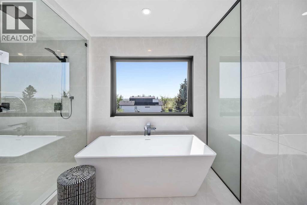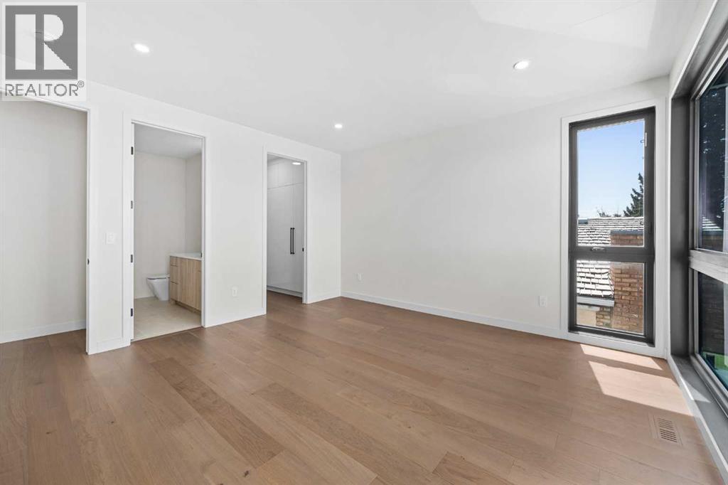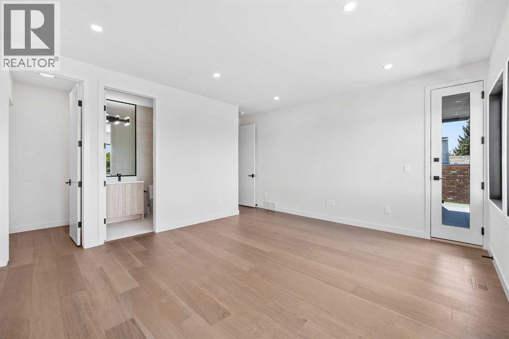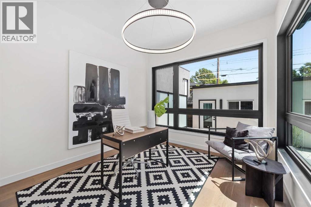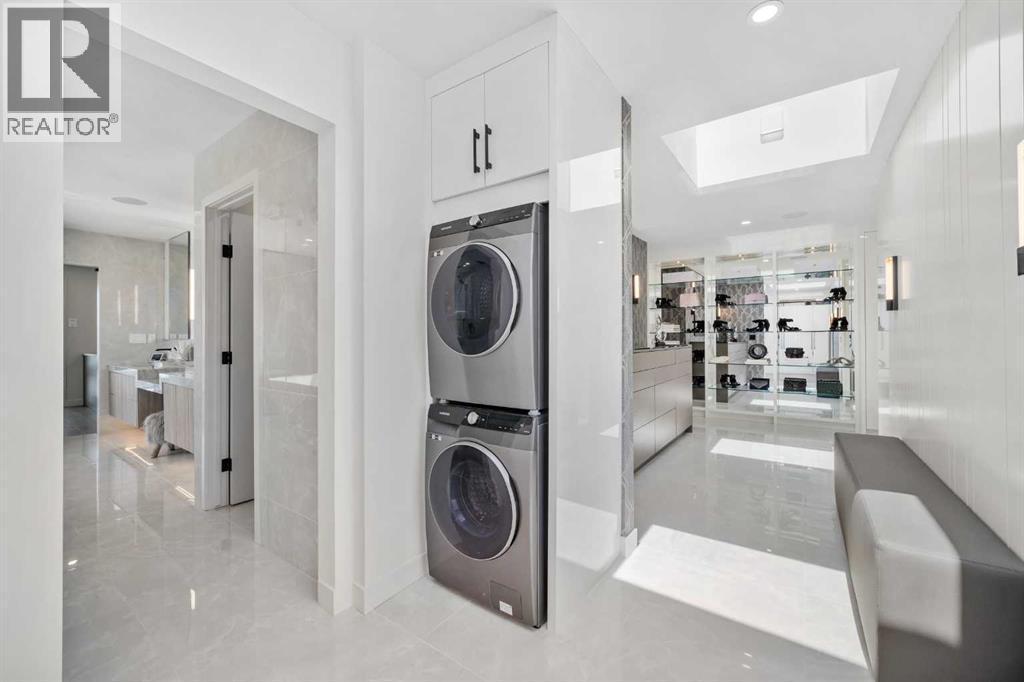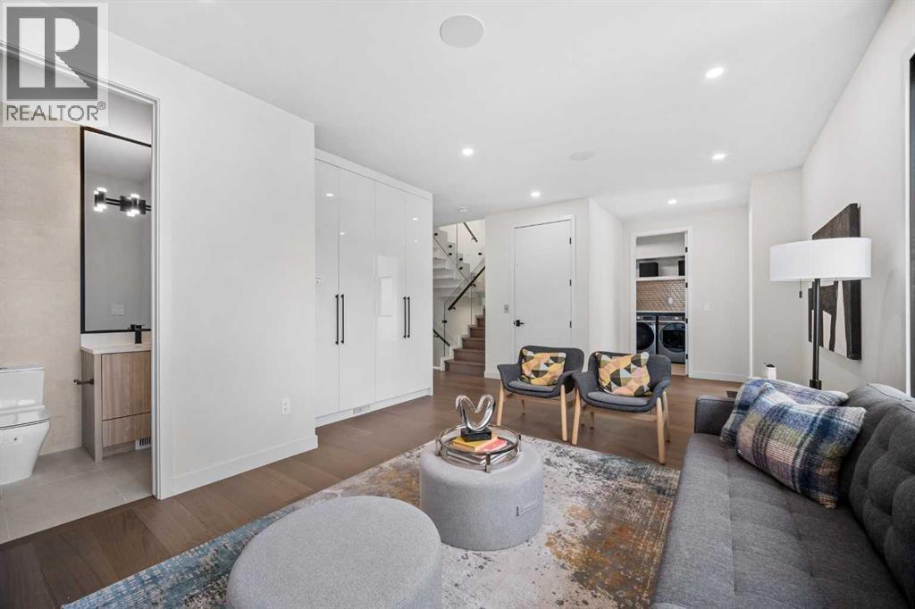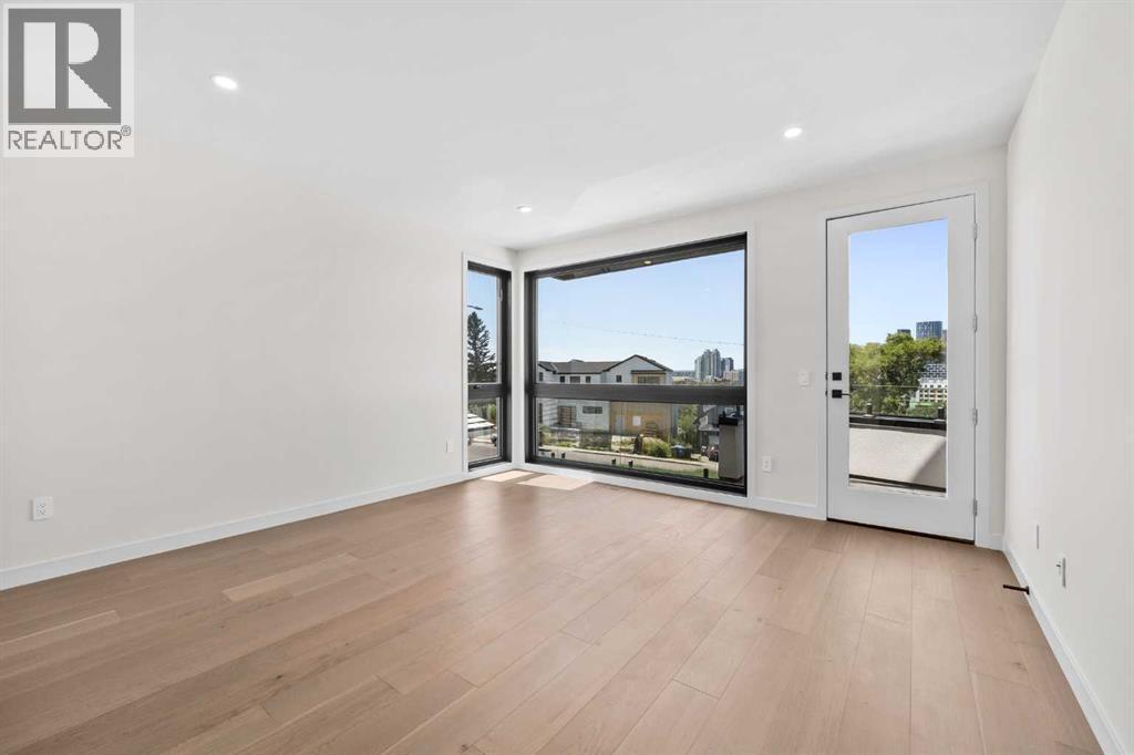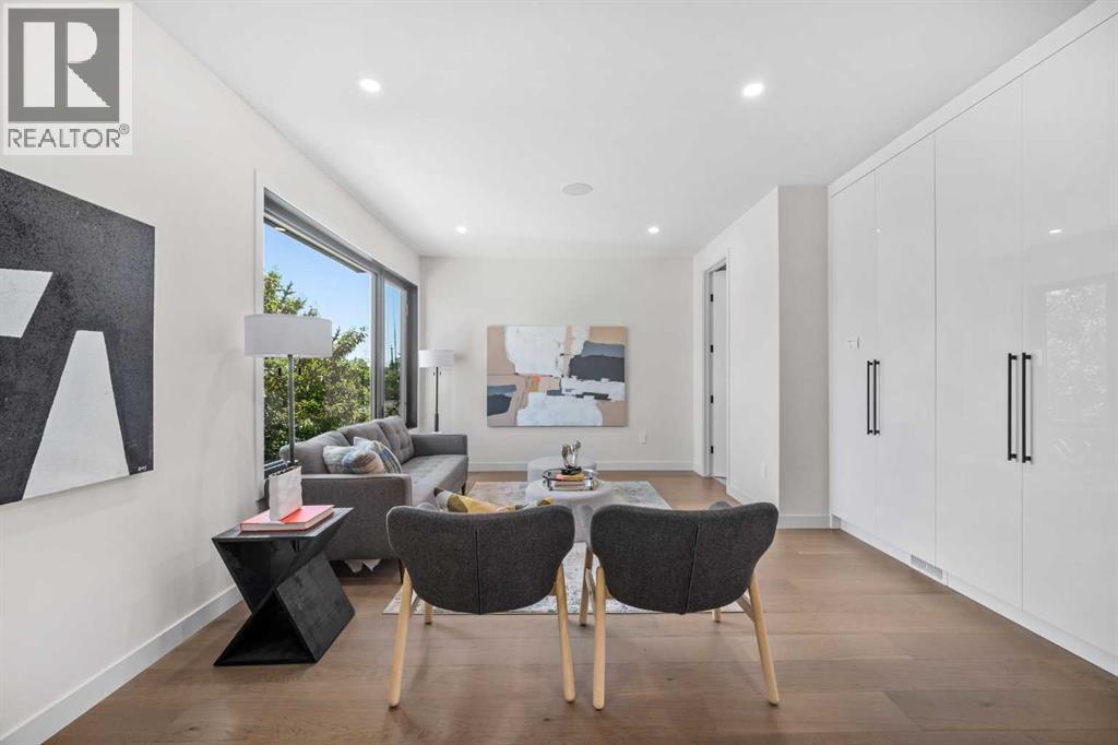 An architectural masterpiece by Silverpoint Custom Homes and Paul Lavoie Interior Design. Perched on a spectacular lot overlooking Bridgeland, and offering breathtaking views of the City and Rocky Mountains. A 5,200-square-foot gem, which seamlessly blends Hollywood Hills vibes, in a meticulous and one of a kind design. A fantastic open floor plan with a separate formal living and dining rooms overlooking the city. Boasting a truly magnificent kitchen, featuring a 13ft waterfall island and all MIELE appliances. Hardwood floors weave throughout the four levels including the basement, creating a harmonious atmosphere of seamless design. The main level surprises you with a hidden coat closet, a spacious mudroom, and a private den overlooking a backyard oasis with a large deck, (hot-tub ready) Move effortlessly between levels via the elevator or a captivating floor to ceiling glass-walled staircase leading to three generous bedrooms and a master top suite, simply like no other. The second floor offers 3 spacious bedrooms with panoramic city views from 2 bedrooms, private balconies, and a separate family lounge with access to a full guest bath. A fabulous laundry room and linen closet complete this level, not to mention large picture windows offering fulll sunrise worthy east views. The third-floor PRINCIPAL BEDROOM is a showstopper with a HUGE BALCONY showcasing the best panoramic city and mountain vews. A separate lounge area with coffee bar, fridge and a built in TV LIFT separate the bedroom area. As you enter the ensuite, flooded with natural light, a magical SMARTGLASS window gives you the option of privacy, or to enjoy the fabulous city views while soaking in the tub. A luxurious dual vanity, dual spa shower area surrounded by glass, featuring heated floors and shower bench. The walk-in wardrobe suite is a one of a kind dream space, with built in's that will rival a designer shop. Large skylights, a huge window and your own washer/dryer, make this the p erfect dressing area. The lower level caters to the extended family and features a media area with full bar, gym, and a large bedroom. A full bath including a steam shower completes this level with all heated hardwood flooring. The outdoor spaces surrounding the house lets you indulge in extended year round outdoor living. A large front patio with a fire pit option, and seating lets you indulge in the west city and mountain views. The rear yard offers you a great dining space, and private relaxation areas with an optional hot tub, and a multi purpose sports area or green space. This home as expected includes all Smart home features, an elevator, extensive internal glass walls, AC, infloor heat, and an oversized garage with a full third car garage option which can be built prior to possession for the buyer at cost. An amazingly unique home with modern, yet classic design elements, encompassing every luxury option a discerning home owner would desire in their dream home. (id:6769