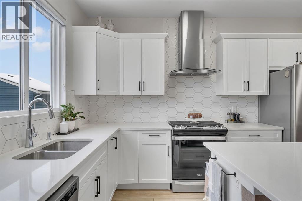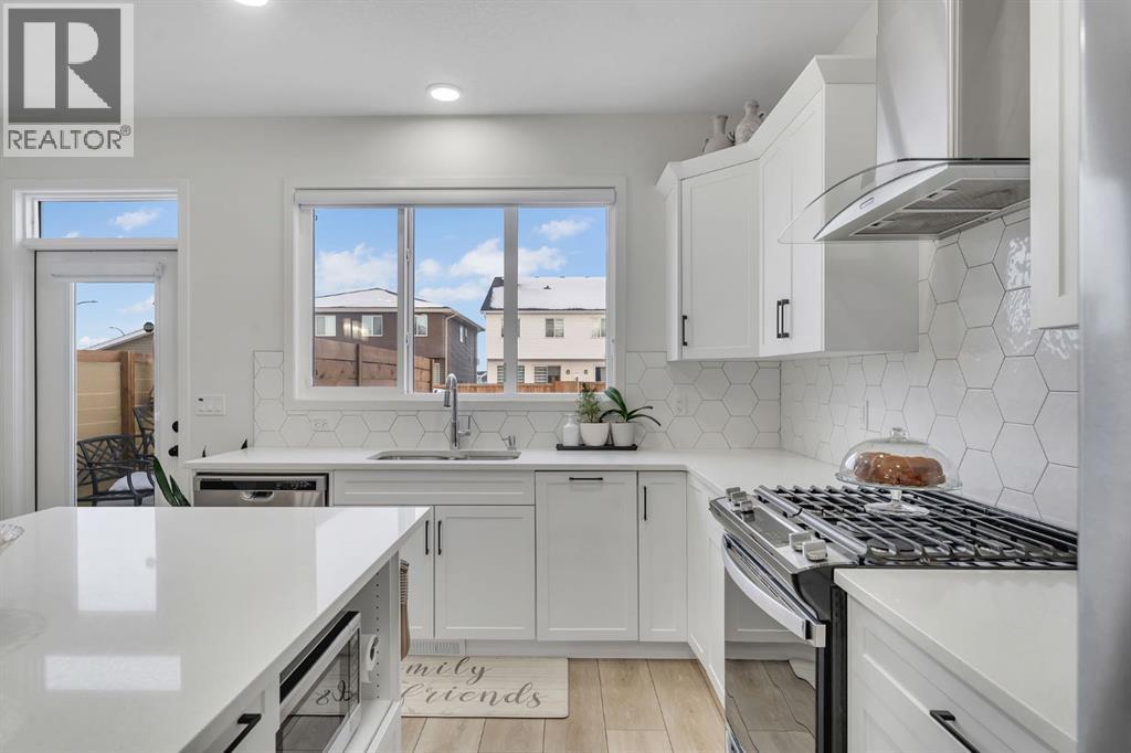 2022-built, 1,726 SQ FT detached home located in the highly desirable and convenient community of Seton. This west-facing home showcases modern, sleek finishes and quality upgrades, including luxury vinyl plank/tile flooring, 9’ ceilings on the main floor* contemporary cabinetry, stainless steel appliances, quartz countertops, gas stove, chimney style hood fan, and upgraded tile backsplash, lighting, and plumbing fixtures.The main floor features a spacious living room, a stylish open concept with corner pantry, dining area, 2-piece bathroom, and mudroom leading to a large extended rear deck, fully landscaped backyard, and two-car gravel parking pad.Upstairs, you’ll find a generous primary bedroom with a 4-piece ensuite, two good sized bedrooms, a central bonus room perfect for family entertainment, a full 4-piece bathroom, and a convenient upper floor laundry room.The unfinished basement offers a separate rear entrance and is zoned for a potential legal suite (subject to city approval) ready for your creative ideas.For added peace of mind, the home includes Alberta New Home Warranty and builder’s warranty. Ideally located steps from transit, parks, playgrounds, and a future school site, and just minutes from Seton Shopping Centre, major highways, South Health Campus, and the future Green Line LRT station. Don't miss this clean well kept none smoking home (id:6769