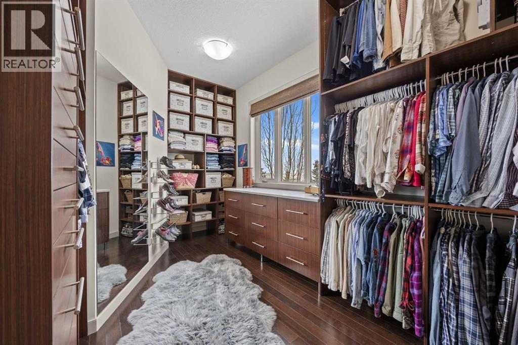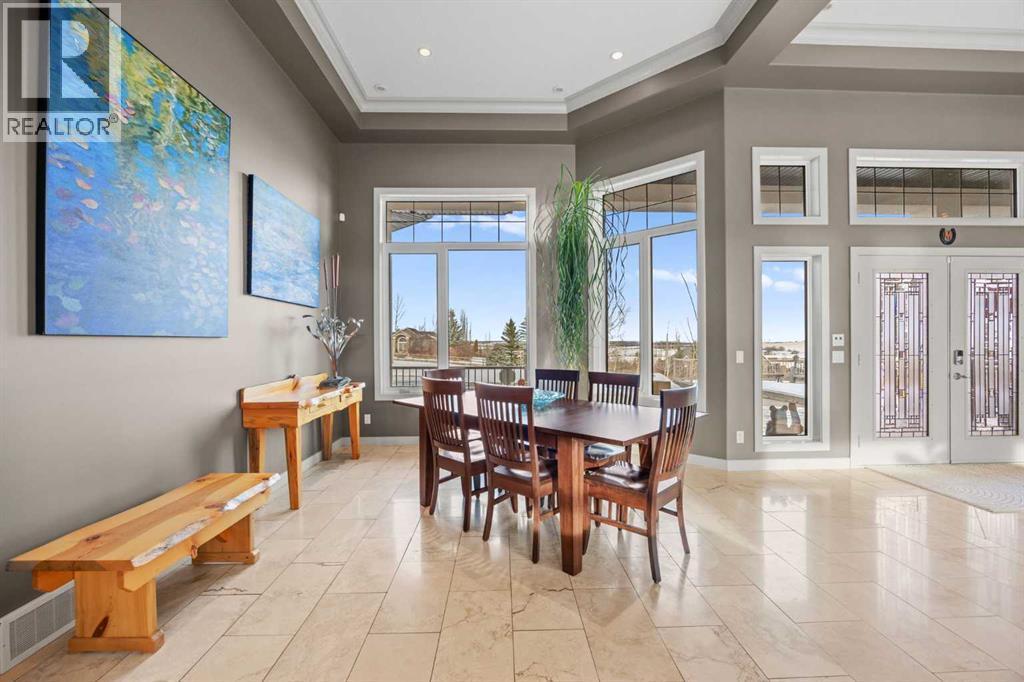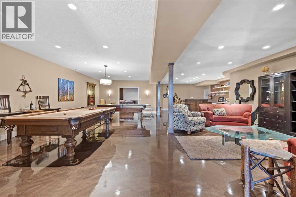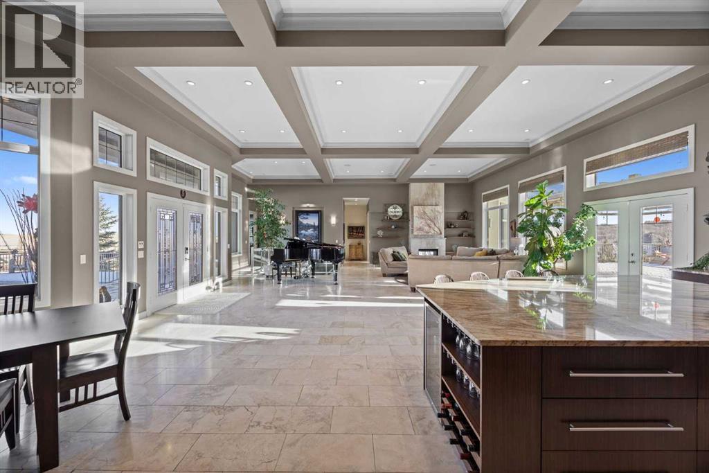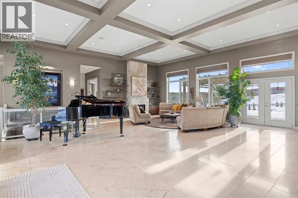 Set behind a gated entry and surrounded by mature landscaping, this extraordinary custom-built estate blends refined architecture with everyday comfort. Designed for both family living and entertaining, the home offers exceptional craftsmanship and thoughtful details throughout.The main gathering space is defined by soaring 13-foot coffered ceilings, oversized triple-pane windows, integrated speakers, and a striking floor-to-ceiling dual-sided marble gas fireplace. Natural stone Crema Viejo travertine tile flows throughout the main level, complemented by solid-core 10-foot doors and custom window coverings.At the heart of the home, the chef’s kitchen is built to perform, featuring a massive granite slab island, 6-burner gas range with dual electric ovens, pot filler, warming drawer, beverage fridge, and trash compactor. A dual sink and separate single sink—both with garburators—add functionality, alongside high-end appliances including a full-size Miele dishwasher and Fisher & Paykel dual drawer dishwasher. The butler’s pantry offers additional prep space with its own sink, oversized fridge, and oversized freezer.The main-floor primary suite is a private retreat, accessed through a dramatic 10-foot double-door entry. A dual-sided marble gas fireplace adds warmth and ambiance, while the spa-inspired ensuite features a Maxx Air hydrotherapy tub, glass shower with body jets, heated towel rack, electric fireplace, and Geberit in-wall toilet. A custom walk-in closet with built-in shelving, drawers, and pull-down rod completes the suite.Also on the main level are two additional bedrooms, each with its own private ensuite, including one with a Geberit toilet. Two powder rooms serve guests and daily living, one featuring a Geberit toilet. A den with curved bay windows offers a flexible office or sitting space. French doors at the front and back entries, slate-covered front deck, camera doorbell, mudroom with built-in shelving, and Miele washer and dryer complete the mai n floor.The walkout lower level features polished heated concrete floors (two zones), 9-foot ceilings, two additional bedrooms with private ensuites, oversized closets, a full wet bar with sink, dishwasher, fridge, and ice maker, pool table area, dedicated theatre room with projector and surround sound wiring, two flex rooms, and built-in bookshelf units. Outdoor living includes expansive deck spaces with a large rear deck and pergola, plus a front deck ideal for quiet enjoyment. The landscaped yard features mature trees, fire pit, children’s playset, and partial fencing. Additional highlights include a heated sunroom wired for a future sauna or hot tub, state-of-the-art water filtration with reverse osmosis, alarm system, two high-efficiency furnaces, and an oversized 1,062 sq ft heated garage with built-in shelving, RV hookups, under-eave outlets, paved driveway, and remote-controlled gate and garage. Close to the Ann & Sandy Cross Conservation Area. (id:6769