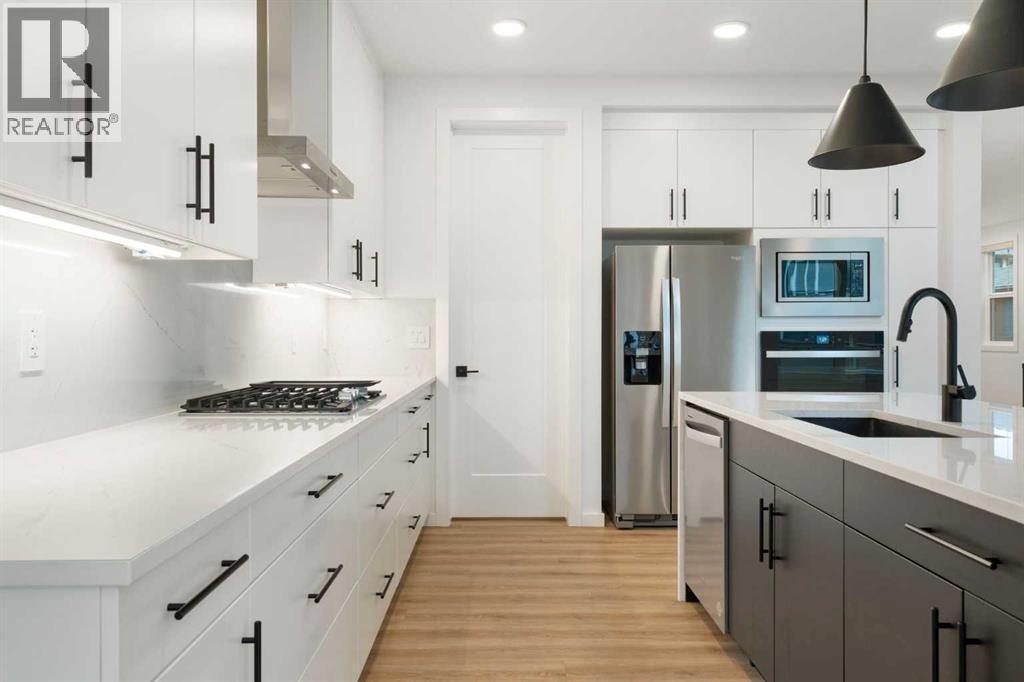 Aspen Spring Estates | 4+1 Bedrooms | 3.5 Bathrooms | 2,380+ Sq Ft Above Grade Welcome to this beautifully upgraded home in the prestigious Aspen Spring Estates of Springbank Hill—where refined design, everyday functionality, and an unbeatable location come together effortlessly. With over 2,380 sq. ft. above grade and a fully finished basement, this home offers the perfect blend of style and space for today’s modern family.From the moment you step inside, you’re greeted by a bright, open-concept floor plan highlighted by soaring ceilings, expansive windows, and sleek contemporary finishes. The main level includes a stylish glass-enclosed home office—perfect for remote work or homework—and a spacious great room anchored by a dramatic two-storey black marble feature wall. Luxury vinyl plank flooring adds both beauty and durability throughout.The chef-inspired kitchen is a true showstopper, featuring a large waterfall island with quartz counters, a built-in wall oven and microwave, gas cooktop, designer lighting, and ample two-tone cabinetry. The seamless flow between the kitchen, dining, and living spaces makes entertaining and everyday living effortless.Upstairs, discover four spacious bedrooms, including a luxurious primary suite with a walk-in closet and spa-style ensuite complete with dual vanities and a modern soaker tub. A generous laundry room and an additional full bathroom provide extra convenience.The fully developed basement offers even more living space, with a large rec room, fifth bedroom, full bathroom, and ample storage—ideal for extended family, guests, or rental potential.Step outside into your private backyard featuring a large deck with elegant glass railings—perfect for summer gatherings or quiet evenings. Additional highlights include a double attached garage and a mudroom with custom built-ins for daily practicality.Located steps from scenic walking paths, Pond, lush green spaces, and just minutes from top-rated schools, the LRT, Westside Rec Centre, and upscale shopping and dining—this home truly has it all.Don’t miss your chance to own this move-in-ready designer home in one of Calgary’s most coveted communities. Book your private tour today—opportunities like this are rare. (id:6769