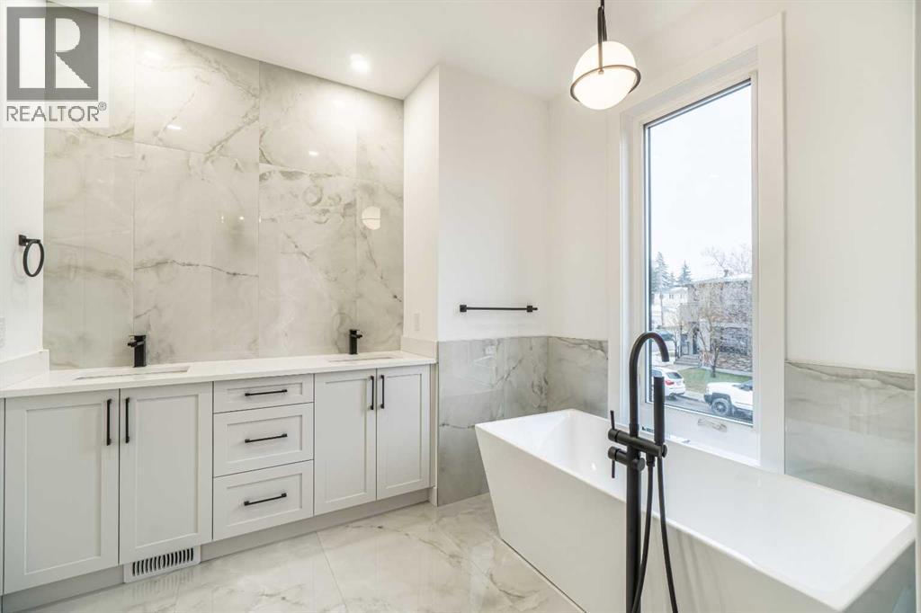 ** BRAND NEW INFILL READY FOR IMMEDIATE POSSESSION ** French Country Style, 2 Storey infill, with WEST facing back yard, nestled on a whisper quiet tree lined street in Glenbrook! Check out these these stunning features: 3+1 bedrooms, chef's kitchen with 10' quartz island/waterfall island/high end appliance package, 10 foot ceilings on main floor / 9 foot ceilings upper & basement, upper office/loft area, cozy gas fireplace, amazing master retreat with 5-piece spa like master bath/roughed-in steam shower/walk-in closet/heated floors, stunning hardwood & tile flooring, custom built-ins in EVERY closet & mudroom, large dining room with chic feature wall, large functional mudroom, roughed-in in-floor heat (in-slab) in basement & roughed-in A/C, double detached garage, good sized WEST backyard with large deck & BBQ line, basement wet bar, towering 14 FOOT vaulted ceiling in master bedroom, 3.5 baths, upper laundry room with sink & much more! Location is amazing - in the heart of Glenbrook on a super quiet tree lined street, all schools close by, only 5 min to DT & easy access to all amenities! This masterpiece comes with bumper to bumper warranty (1, 2, 5, 10) & all landscaping is complete - sidewalks/rear deck/fences & gates/stucco privacy wall & sod! Call today for details! IMMEDIATE POSSESSION! Please note - pictures are of a similar/recent build. (id:6769