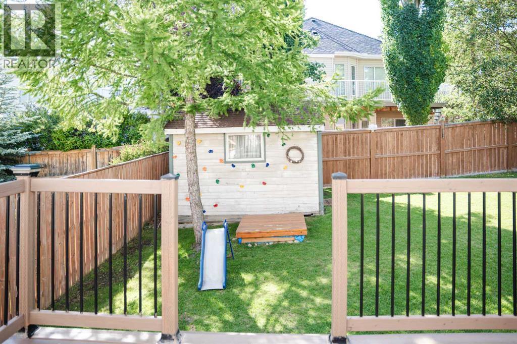 Rare 4-Level Split in Rocky Ridge and Royal Oak – Over 2,250 sq. ft. of living space! This beautifully maintained home with double attached garage is perfectly situated at the end of a quiet cul-de-sac with a park and green space right across the street. This home is within walking distance to the Tuscany LRT station and the Rocky Ridge Ranch House with its activity rooms, children’s pool, tennis and basketball courts. The main floor is bright and inviting with hardwood floors, vaulted ceilings, and large windows that flood the living and dining areas with natural light. The kitchen features a 10' ceiling, stainless steel appliances, an oversized pantry, and a sunny eating nook overlooking the 3rd level. The 3rd level offers a cozy family room with a corner fireplace, a 3rd bedroom, and a full bathroom. Upstairs, you’ll find two spacious bedrooms, each with its own bathroom, including the primary suite with walk-in closet and private ensuite. The fully finished basement includes a large rec room, office space, laundry, and ample storage. Outside, enjoy a large west-facing backyard with a deck and storage shed. Recent updates include triple-pane windows, hot water tank, and refreshed bathrooms with new vanities, toilets, and vinyl plank flooring. This is a fantastic family home in a great location with wonderful neighbors — a true gem in the border of Rocky Ridge and Royal Oak! (id:6769