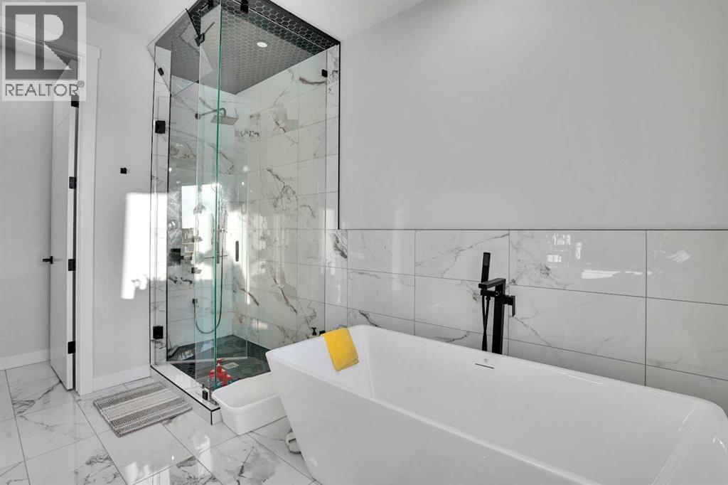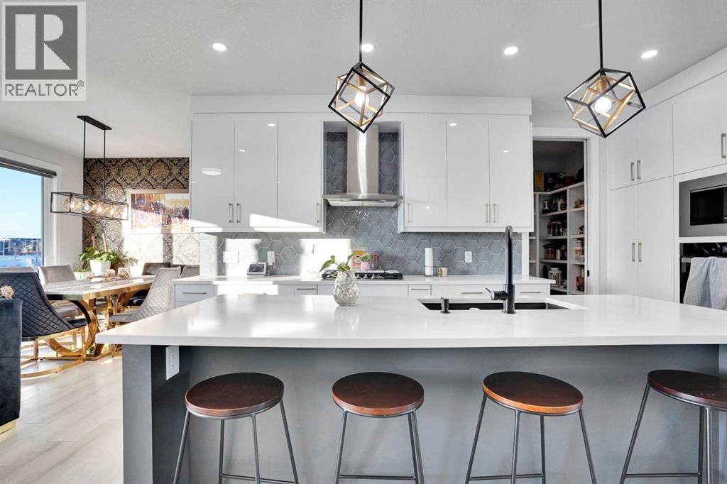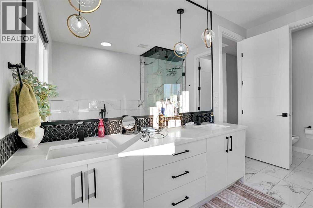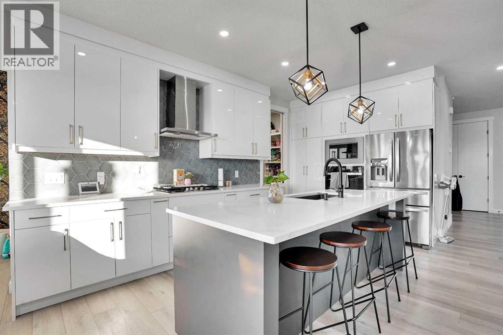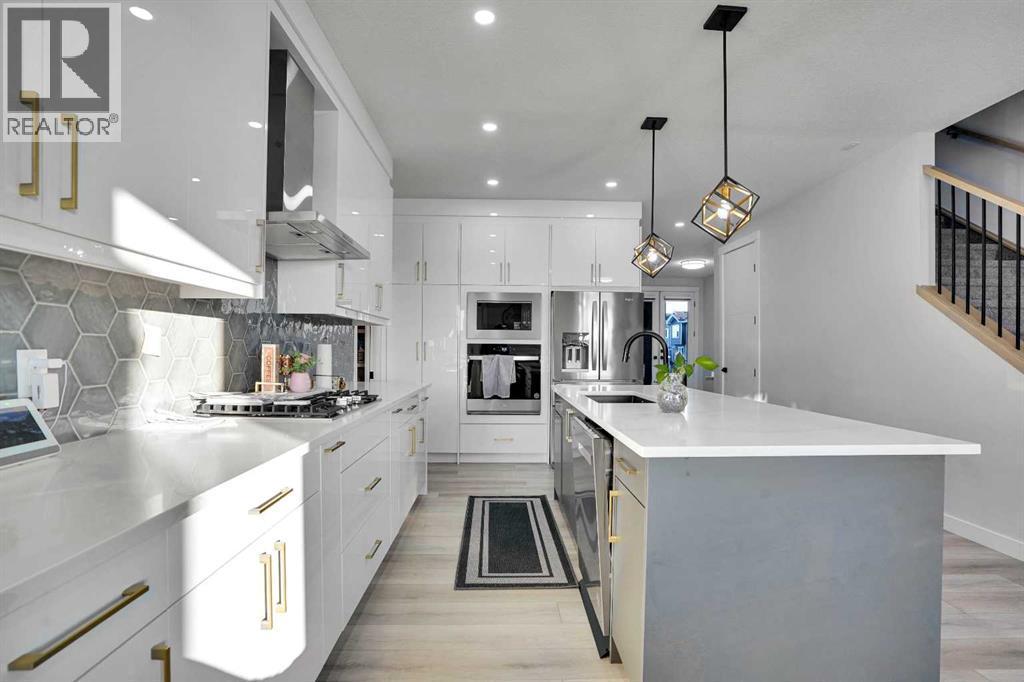 Experience elevated living in thid exceptional walkout home located in the highly desirable community of Midtown, Airdrie This stunning custom built walkout property perfectly blends modern luxury with everyday comfort. Offering 7 bedrooms, 5 bathrooms, two master suites, and over 3600 sq. ft. of fully developed living space, this home is designed to adapt to every stage of life.From the moment you step inside, you’ll appreciate the 10-foot ceilings on every level, oversized windows, and a bright open-concept layout that fills the home with natural light while showcasing beautiful lake views. The main floor features a welcoming foyer, spacious living and dining areas, and a chef-inspired kitchen with a built-in electric cooktop, wall oven, microwave, and full-height cabinetry for plenty of storage. The added SPICE kitchen with a gas range makes entertaining and everyday cooking effortless.Upstairs, you’ll find four generously sized bedrooms, including two luxurious master suites. The primary suite offers serene lake views, a walk-in closet, and 6-piece ensuite. The second master bedroom overlooks quiet green space and includes its own walk-in closet and ensuite. A bright bonus room and a convenient upper-floor laundry room complete this level.The fully finished walkout basement is perfect for entertaining or extended family living. It features two additional bedrooms, a full bathroom, a stylish wet bar —ideal for guests, teenagers, or potential rental income.Outside, enjoy a professionally landscaped backyard, new concrete step. Relax on your covered deck overlooking the pond while children enjoy the nearby playground.Recent upgrades include a new air conditioning system, concrete work, and more. Located just steps from green spaces, lake access, and with a school bus stop right across the street, this home truly offers luxury, convenience, and an unbeatable lifestyle.This is a rare opportunity you won’t want to miss—book your private sh owing today! (id:6769