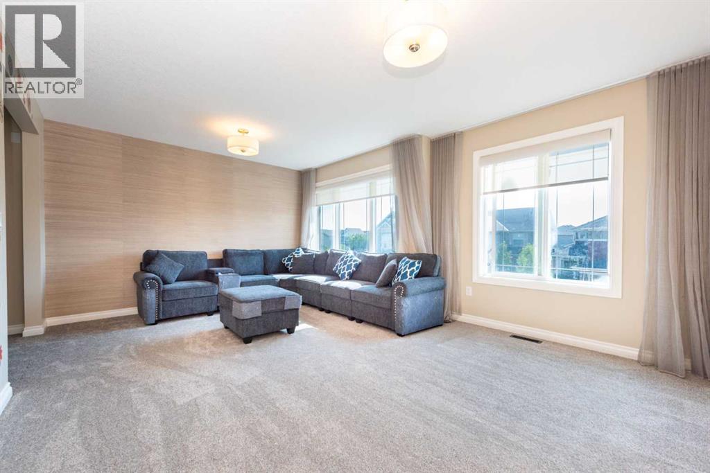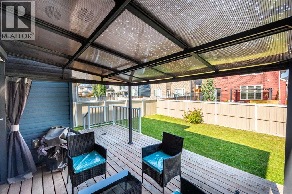 This former Genesis show home is fully upgraded and ideally located in Bayside. The main floor boasts an open floor plan with spacious principal rooms, pristine engineered high-end laminate flooring, a beautifully designed kitchen with full-height cabinets, striking granite countertops, and high-end stainless steel appliances, plus a main floor office that can serve as a fourth bedroom. Upstairs, you’ll find an expansive bonus room, a large primary suite complete with a 4-piece ensuite and walk-in closet, two generous secondary bedrooms, and a convenient laundry room with extra cabinetry. Designer wallpapered feature walls add character throughout the home, while the basement is insulated, wired, and drywalled—ready for your personal touch. Additional highlights include upgraded window coverings, central A/C, a large deck with a privacy screen, new vinyl and wood fencing, and a beautifully maintained yard with underground sprinklers. (id:6769