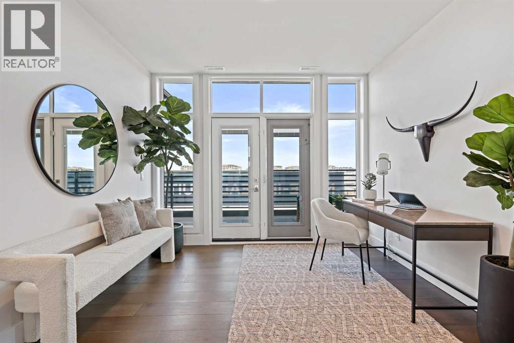 New Price Release — 10 Luxury Reflection Homes Just Completed, Ready for Immediate Occupancy! The Streams of Lake Mahogany present an elevated single-level penthouse lifestyle in our stunning Reflection Estate homes situated lakeside on Mahogany Lake. Selected from the renowned Westman Village Community, you will discover THE SPRINGS, a home created for the most discerning buyer, offering a curated space to enjoy and appreciate the hand-selected luxury of a resort-style feel while providing you with a maintenance-free opportunity to lock and leave. Step into an expansive 2000+ builders sq ft stunning home overlooking the gorgeous Mahogany Lake featuring a thoughtfully designed open floor plan inviting an abundance of natural daylight with soaring 12-foot ceilings and floor to ceiling windows. The centralized living area, ideal for entertaining, offers a Built-in ULTRA JennAir appliance package with a 42” - 24.2 Cu Ft., Built-In, paneled, french door refrigerator with Obsidian black interior and built-in icemaker plus water with surround refrigerator Armoire Kit. Additionally, 24” cabinet panel ready dishwasher with stainless steel interior, 36” Professional-Style gas range top, Faber built-in cabinet hood fan, 30” combination wall oven plus microwave and Silhouette Emmental 24" Bev. Center; all nicely complemented by an Elevated Obsidian Colour Palette. All feature stunning Quartz countertops. You will enjoy two beautiful bedrooms and a generous central living area. The Primary Suite features a spacious 5-piece oasis-like ensuite with dual vanities, a large soaker tub, a stand-alone shower, and a generous walk-in closet. The Primary Suite and main living area open to a 35 ft x 17 ft terrace with a lovely view of the stunning Lake. Yours to enjoy and soak in every single day. To complete the package, you have a sizeable office area adjacent to the spacious laundry room and powder room, which open onto another expansive 25ft terrace, and a double-attached heated gara ge with a full-width, full-length driveway. Custom additions to the home include under-cabinet lighting in the kitchen, A/C, a laundry room with a convenient folding counter, a coffee bar, an office space, and more. Jayman's standard inclusions feature their trademark Core Performance, which includes 4 Solar Panels used to power common spaces, Built Green Canada Standard with an Energuide rating, UVC Ultraviolet light air purification system, high-efficiency heat pump for air conditioning, forced air fan coil hydronic heating system, active heat recovery ventilator, Navien-brand tankless hot water heater, triple pane windows and smart home technology solutions. Enjoy Calgary’s largest lake, with 21 more acres of beach area than any other community. (id:6769