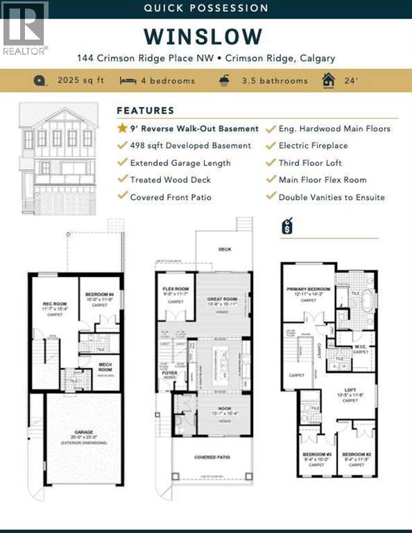 Meet the Winslow, Built by Master Builder Douglas Homes!Nestled in the highly sought-after community of Crimson Ridge, this stunning new build offers the perfect blend of luxury, comfort, and nature. Backing onto scenic walking paths and the prestigious Lynx Ridge Golf Course, this home provides views and an unparalleled sense of tranquility.Spanning over 2,000 sq. ft., this open-concept design is crafted with quality finishings and modern elegance. Hardwood floors flow seamlessly throughout the main level, leading to a great room with a cozy fireplace, an inviting dining room, and a chef-inspired kitchen featuring an oversized island, quartz countertops, stylish cabinetry, and five stainless steel appliances, including a gas stove. A spacious floor to ceiling pantry and coffee station adds convenience, while the flex room - ideal as an office, den or play room for the kids offers additional versatility. Step outside to enjoy the expansive 20’ x 10’ covered patio - perfect for entertaining or unwinding in nature.Upstairs, the home continues to impress with three spacious bedrooms, a loft-style bonus room, and a dedicated laundry room. The primary suite is a true retreat, featuring a luxurious 5-piece ensuite with a soaker tub, separate glass shower, double vanities, and a generous walk-in closet.The fully finished basement extends the living space with a large recreational room, an additional bedroom, and a full bathroom, making it perfect for guests or family gatherings.With 9 ft. ceilings, 8 ft. doors on the main level, and exceptional craftsmanship throughout, this home is both sophisticated and functional. Surrounded by nature and minutes from amenities, this is a rare opportunity to own a Douglas Home in one of the most desirable location. This home is under construction, some of the photo's may not be a true representation of this home. (id:6769