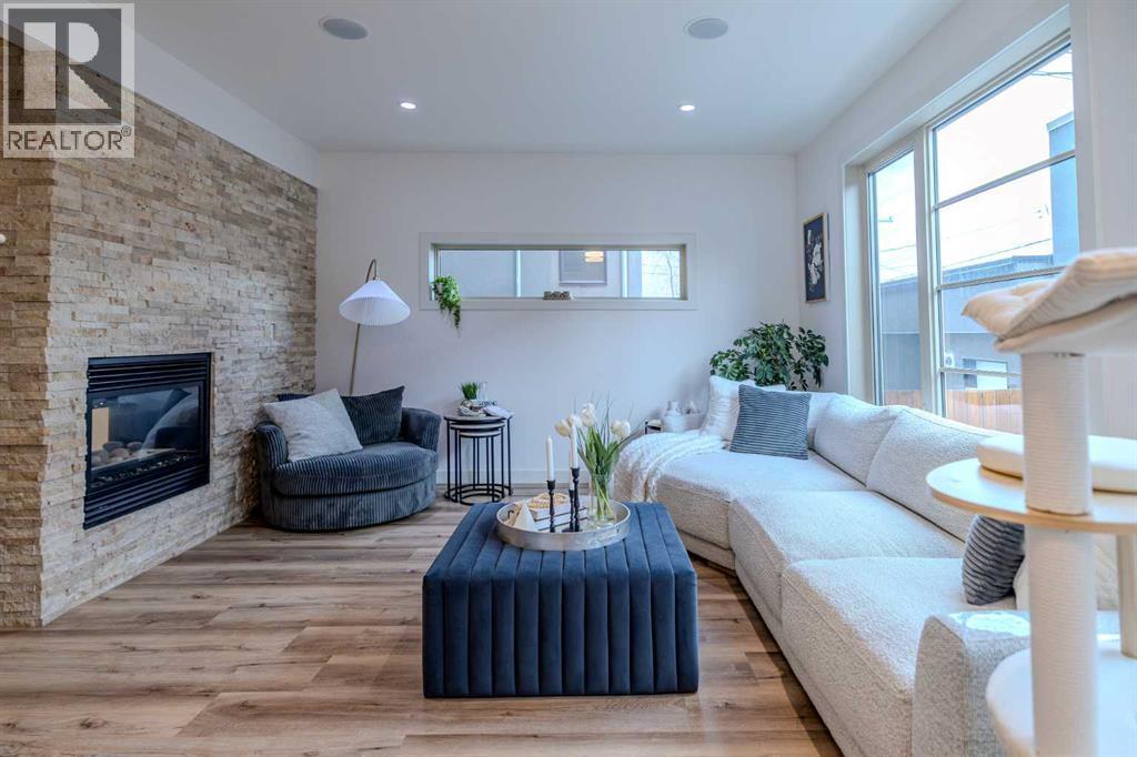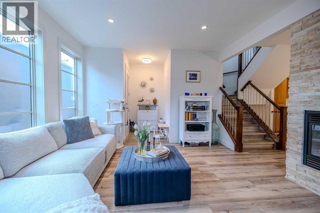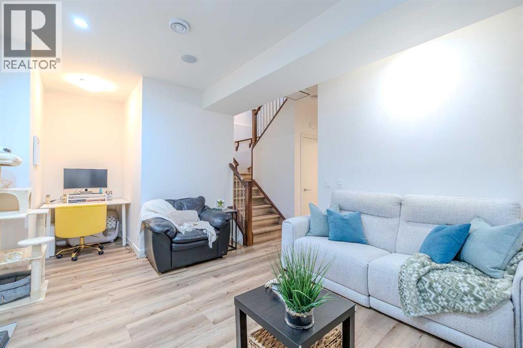 Well maintained, modern, and quiet 2-storey townhome offering nearly 2,000 sq ft of developed living space in the heart of Killarney. This 3-bedroom, 3.5-bath home features 2 bedrooms up and 1 down. The primary bedroom offers high ceilings, double sinks, a spacious shower, and walk-in closet. The second upstairs bedroom includes its own ensuite, plus convenient second-floor laundry.Fully developed basement with a large third bedroom, 4-piece bathroom, and second living room—ideal for guests or a home office. Recent updates include new flooring, fresh paint, and updated light fixtures. Features include a double-sided fireplace between the living and dining rooms, quartz countertops, gas range, stainless steel appliances, and ample storage.Low condo fees, single detached garage, and an excellent inner-city location—just a 3-minute walk to the LRT for an easy commute downtown, with quick access to 17 Ave, Crowchild Trail, transit, and local amenities. (id:6769