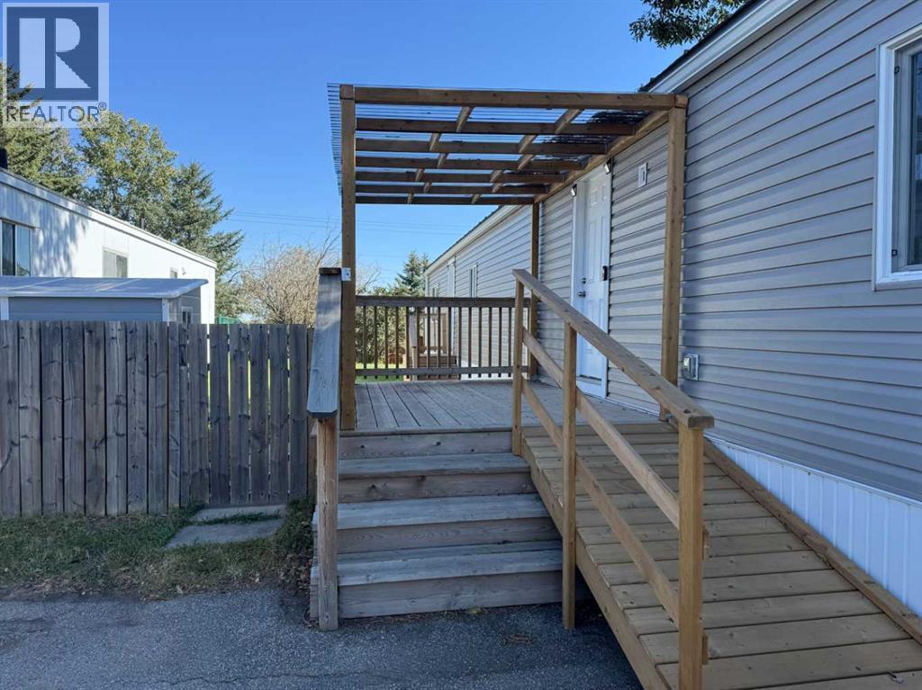 Welcome to High River Village, a quiet, family-friendly community in NE High River. This beautifully updated mobile home offers modern comfort and thoughtful upgrades throughout—ideal for first-time buyers, downsizers, or anyone seeking affordable, stylish living in a welcoming neighborhood.The home features a fully fenced yard, a covered porch with a spacious deck, and a well-maintained green lawn, perfect for kids, pets, and outdoor entertaining. A storage shed provides convenient space for tools, bikes, or seasonal items.Inside, enjoy a bright, sun-filled living room and a welcoming dining area, creating a warm and inviting space for everyday living or hosting guests. Recent upgrades include new vinyl windows, low-maintenance vinyl siding, and a durable metal roof, offering long-term value and peace of mind. Additional highlights include a new washer and dryer and a new accessibility ramp, adding both convenience and inclusivity.With 2 bedrooms and 1 full bathroom, this home offers a functional and comfortable layout well-suited for small families or those looking to downsize without sacrificing comfort.Pad fees include water, sewer, garbage removal, site maintenance, and park management.Don’t miss this opportunity to own a move-in-ready home in one of High River’s most peaceful and family-oriented communities. (id:6769