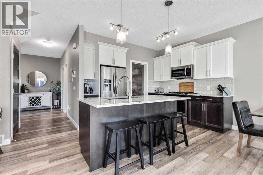 **OPEN HOUSE SATURDAY MARCH 7TH 11AM-1PM**This thoughtfully laid-out home features 4 bedrooms – 3 upstairs and 1 downstairs – along with a spacious bonus room. The bright, open-concept main floor is ideal for entertaining, featuring a modern kitchen with stainless steel appliances, granite countertops, solid wood cabinetry, gas stove, kitchen island, and a generous dining area. The living room includes a fireplace, creating a warm and inviting atmosphere. A 2-piece powder room, functional mudroom with walk-through pantry complete the main level. Upstairs with the 3 bedrooms features a laundry area which makes laundry breeze, along with a bonus room (currently used as a bedroom). Hunter Douglas blinds throughout the home. Downstairs, the fully developed basement offers a large family room, a 4-piece bathroom, and a large private bedroom — great for guests, teens, or multigenerational living.Step outside to a low-maintenance backyard with a tiered deck and pergola, ideal for relaxing or entertaining. The double attached garage (18’ x 23’5”) includes storage space.Located in a family-friendly neighborhood close to parks, walking paths, and amenities, this home checks all the boxes. (id:6769