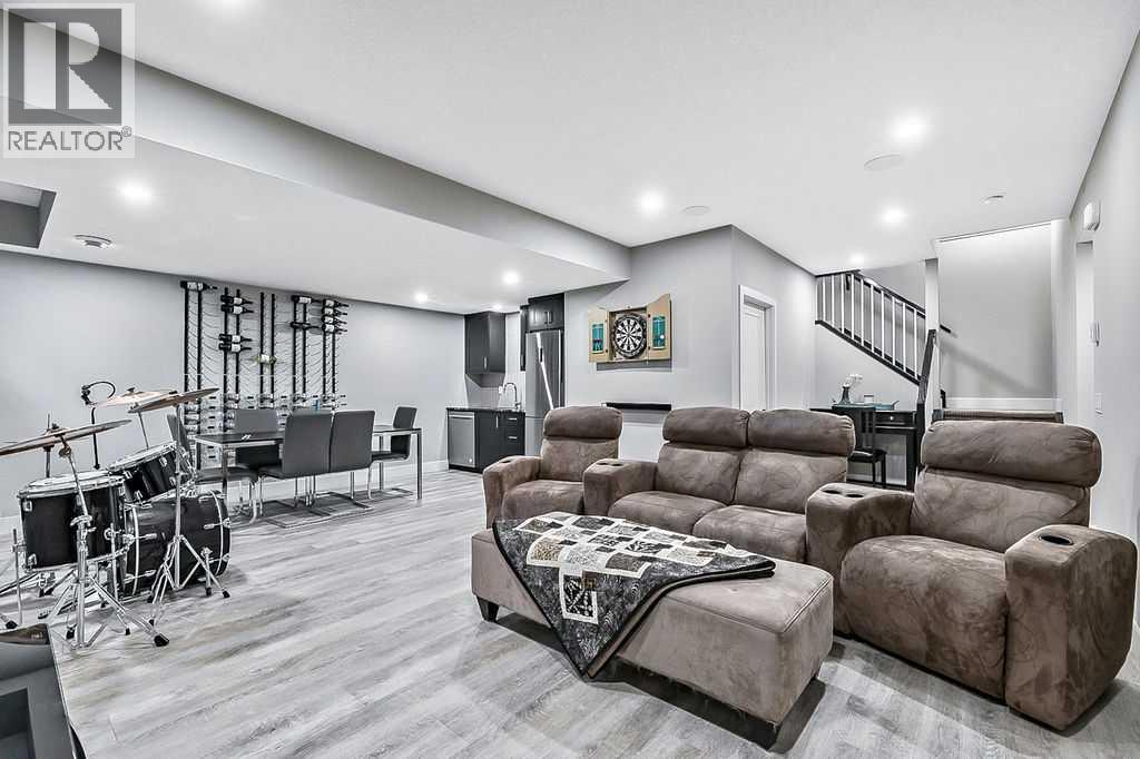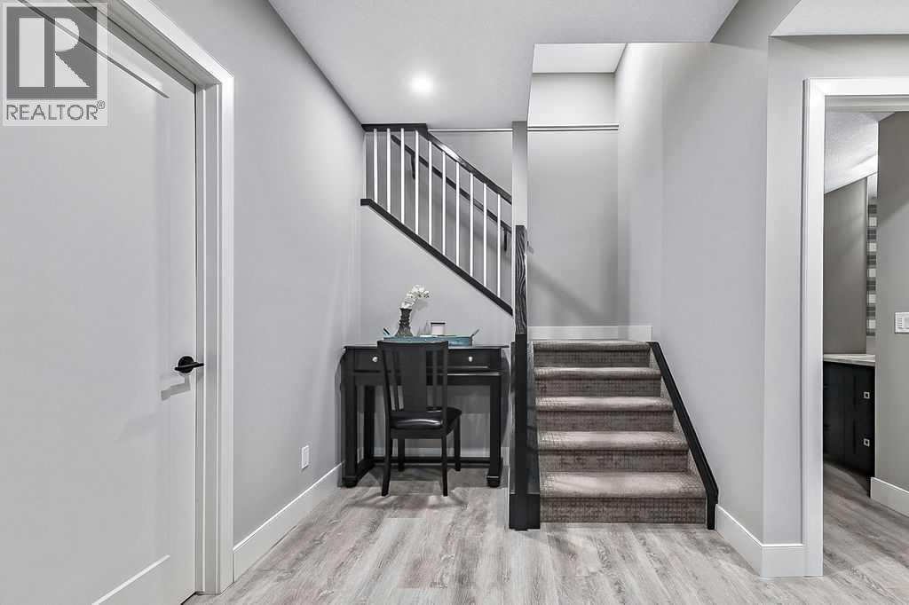 Welcome to this stunning, METICULOUSLY CARED FOR home in the one of a kind Mickelson Golf Course and lake community of Harmony. Situated steps from a greenspace, this home has great curb appeal and captures your attention with a full front verandah that invites you to sit and enjoy the serene surroundings. Step inside to a bright and sunny open floor plan that creates an amazing first impression. The breathtaking kitchen features high end appliances including a heavy duty Miele hood fan and a Miele 6-burner gas stove with gas oven. The trendy white cabinetry, a huge island and granite countertops add a touch of elegance to this functional space, perfect for any home chef. Throughout the main floor, beautiful hardwood floors lead you to a cozy den, ideal for a home office or quiet retreat. The spacious living room is a true highlight, showcasing a fireplace feature wall that serves as the perfect centerpiece for gatherings. Upstairs, you'll find a great sized bonus room, a convenient laundry room and three great sized bedrooms. The extra large primary bedroom is a luxurious escape, complete with a spa inspired ensuite and a generous walk in closet. The fully developed basement offers even more living space and includes a fully SELF CONTAINED FOURTH BEDROOM WITH ITS OWN LAUNDRY, walk in closet and 4 piece ensuite; also a 2 piece bathroom and huge games/family room, perfect for entertaining or relaxing with loved ones. With nearly 2,800 square feet of thoughtfully designed space, this FOUR BEDRROM FAMILY HOME features a floor plan that effortlessly accommodates a variety of lifestyles. Move in and enjoy the incredible amenities Harmony has to offer including two private lakes, miles of beautiful pathways, parks, playgrounds, the future Village Centre, a WORLD CLASS MICKELSON GOLF COURSE and quick easy access to the mountains. (id:6769