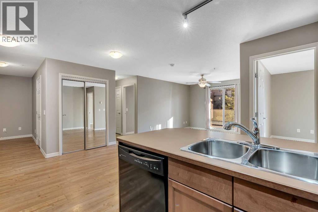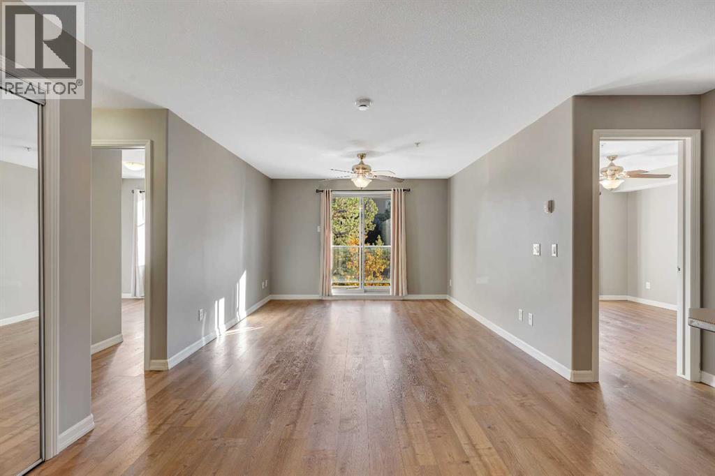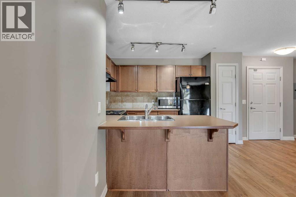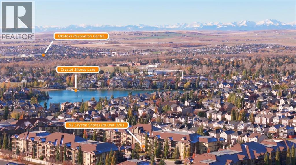 LAKE ACCESS | RESORT-STYLE AMENITIES | TWO PARKING STALLS | MOVE-IN READY | 2 BED/BATH + DEN | Welcome to the Mesa condos in Crystal Shores, where low-maintenance living meets year-round lake access and resort-style amenities. This beautifully updated second-floor end unit offers 908 square feet of thoughtfully designed living space with a bright, open layout and plenty of natural light throughout. This ideal floorplan was created for both privacy and functionality, featuring two spacious bedrooms, two full bathrooms, a den, and in-suite laundry — making it an excellent fit for almost anyone. The kitchen offers ample counter space with loads of cabinetry, a large pantry, sleek black appliances, and a sizable breakfast bar. The open layout allows plenty of room for large living room furniture and a full-sized dining set. A convenient den or flex space nearby makes an ideal home office or reading nook, while the dining and living area flows seamlessly onto a large covered balcony with a gas BBQ hookup, perfect for enjoying a morning coffee or glass of wine. The large primary suite features a walk-through closet, a private 4-piece ensuite, and a large east-facing window. The second bedroom is equally generous and has access to a full bathroom and ample closet space. Additional features include updated lighting, two linen closets, and window coverings throughout. All flooring was replaced in 2023 with luxury vinyl plank, and the home has been very well maintained since, offering a truly move-in-ready experience. This unit comes with two titled parking stalls: one surface stall just steps from the entrance and one heated underground stall that includes an adjacent storage cage. Living at Mesa means enjoying more than just your home — it’s a lifestyle. Residents have access to a private fitness centre, hot tub, sauna, games room with a pool table, and a large social space with a kitchen for hosting gatherings, as well as an on-site car wash bay. As part of the Crystal Sho res community, you’ll also enjoy exclusive lake privileges with swimming, paddleboarding, beach volleyball, skating in the winter and a community golf course. Perfectly situated on the north side of Okotoks, this location offers quick access to Calgary while providing the peaceful, lakeside atmosphere that makes Crystal Shores one of the most desirable communities in town. Book your private showing today! (id:6769