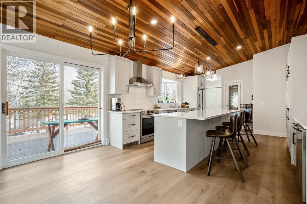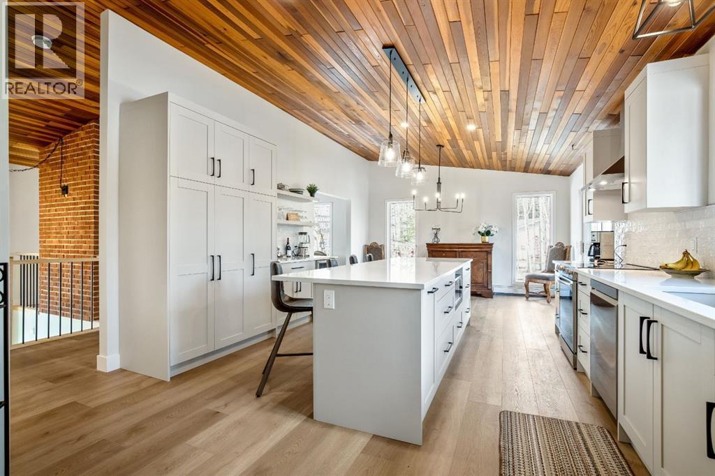 Bright and sunny professionally renovated home in West Bragg Creek located mid way between the Hamlet and the Bragg Creek trail system. All you need to do is unpack your furniture and start enjoying country life. Major renovations include a stunning Legacy kitchen with shiny quartz counters, electric slide in range featuring convection bake, no preheat, steam bake and Air Fry to make cooking a breeze. New flooring throughout, upstairs windows are triple glazed and upstairs bathrooms refinished. Three bedrooms upstairs, brick fireplace in living room, family room with large windows on lower level. Hot water heating with 5 zones ensures each room meets your living temperature ideals. Underdrive garage is heated. Park like yard is perfect for kids and dogs. Children's slide and swings, gas BBQ on deck, fire pit with seating and a large dog run. Everything you need to start your rural life - all yard furniture and even the ride on lawn tractor to help maintain your yard. No water or septic concerns here! Mountain View Park has its own water and sewer system. (id:6769